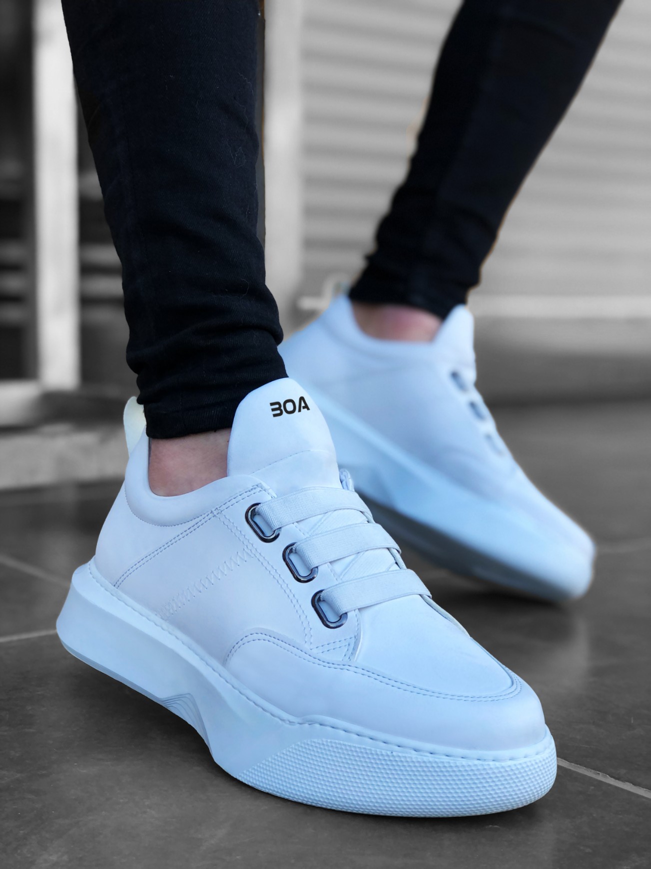 • Tugerdi Bantlı Yüksek Taban Beyaz Günlük Tarz Erkek Spor Ayakkabı TGE230310