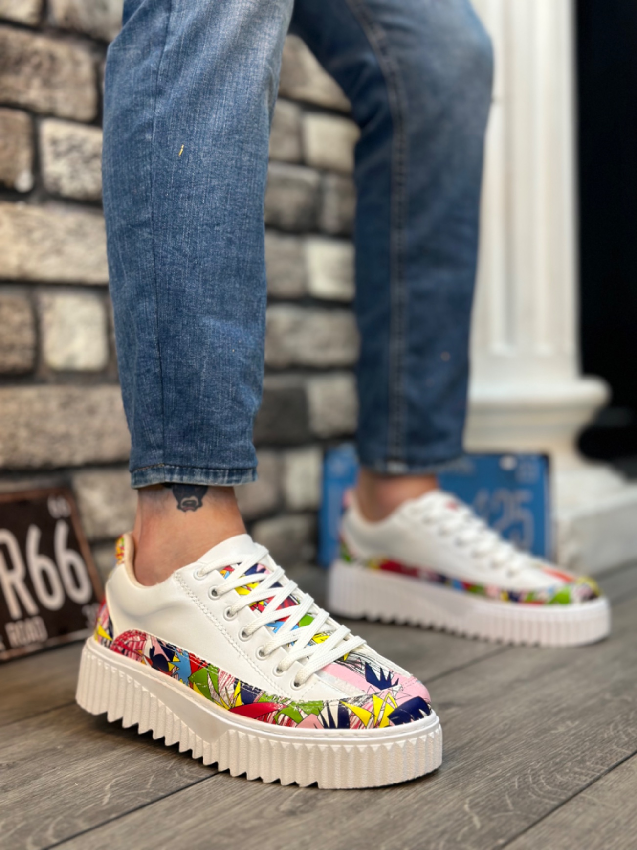 • Tugerdi Beyaz Paraşüt Kumaş Alaca Renk Desen Yüksek Hafif Taban Tarz Erkek Spor Ayakkabı TGE230951
