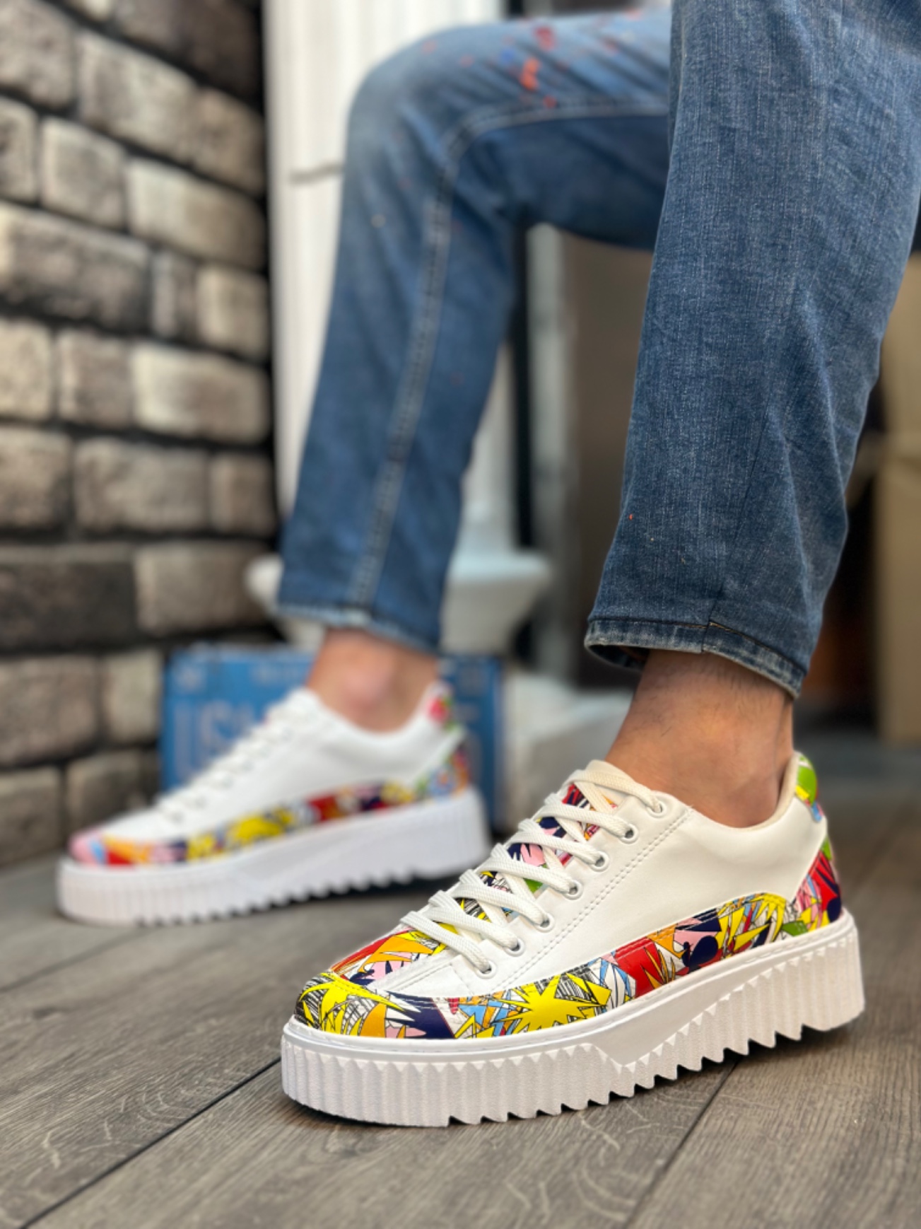 Tugerdi Beyaz Paraşüt Kumaş Alaca Renk Desen Yüksek Hafif Taban Tarz Erkek Spor Ayakkabı TGE230951