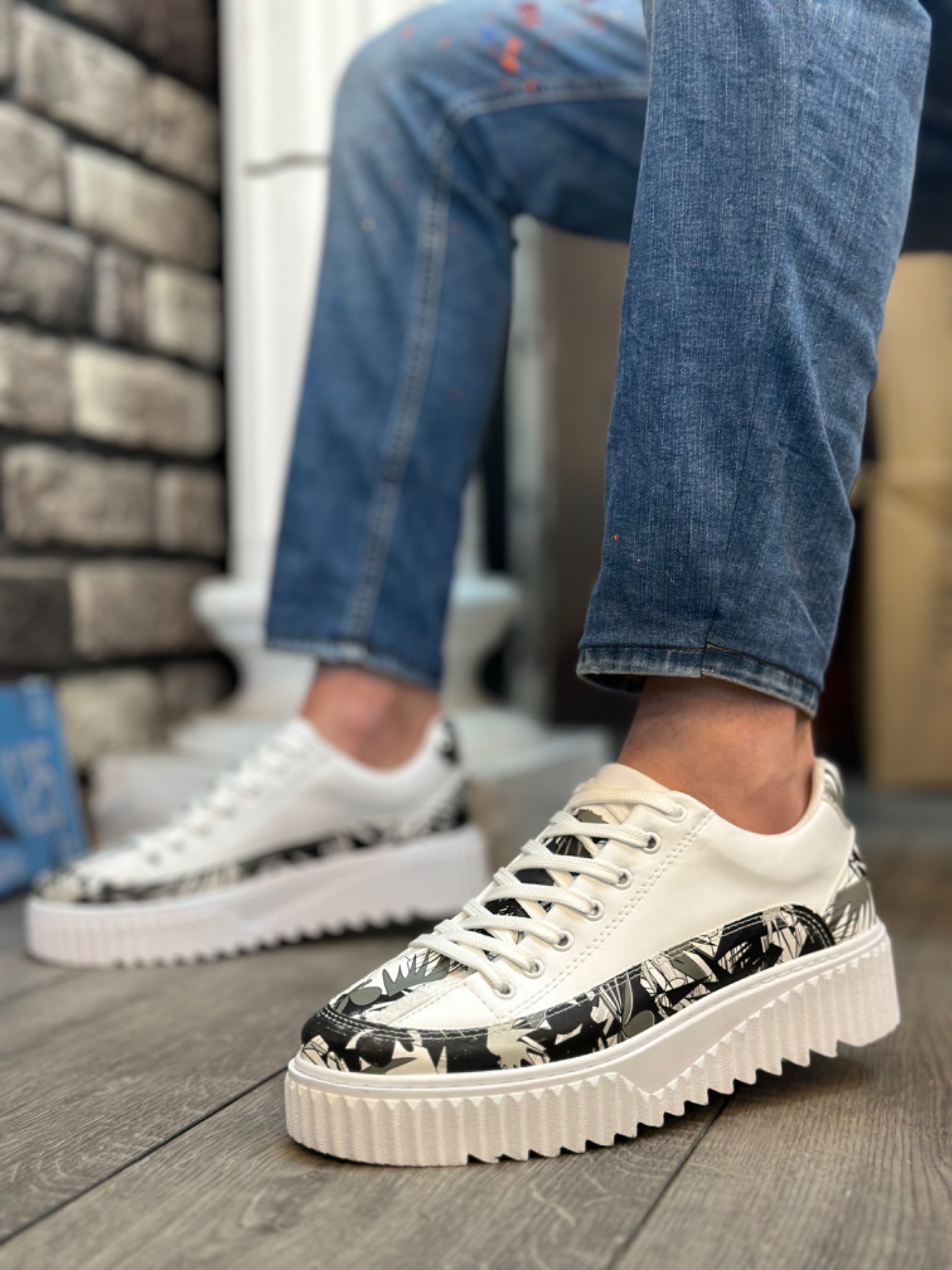 Tugerdi Beyaz Paraşüt Kumaş Siyah Desen Yüksek Hafif Taban Tarz Erkek Spor Ayakkabı TGE230951