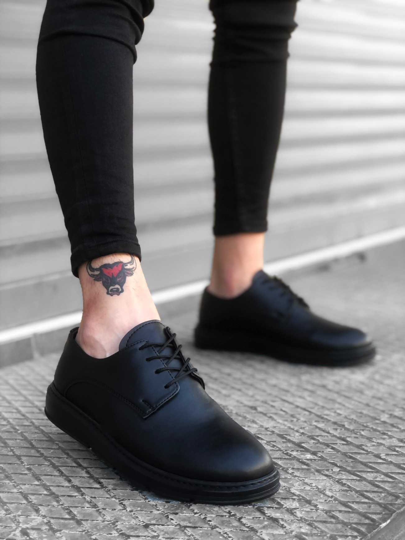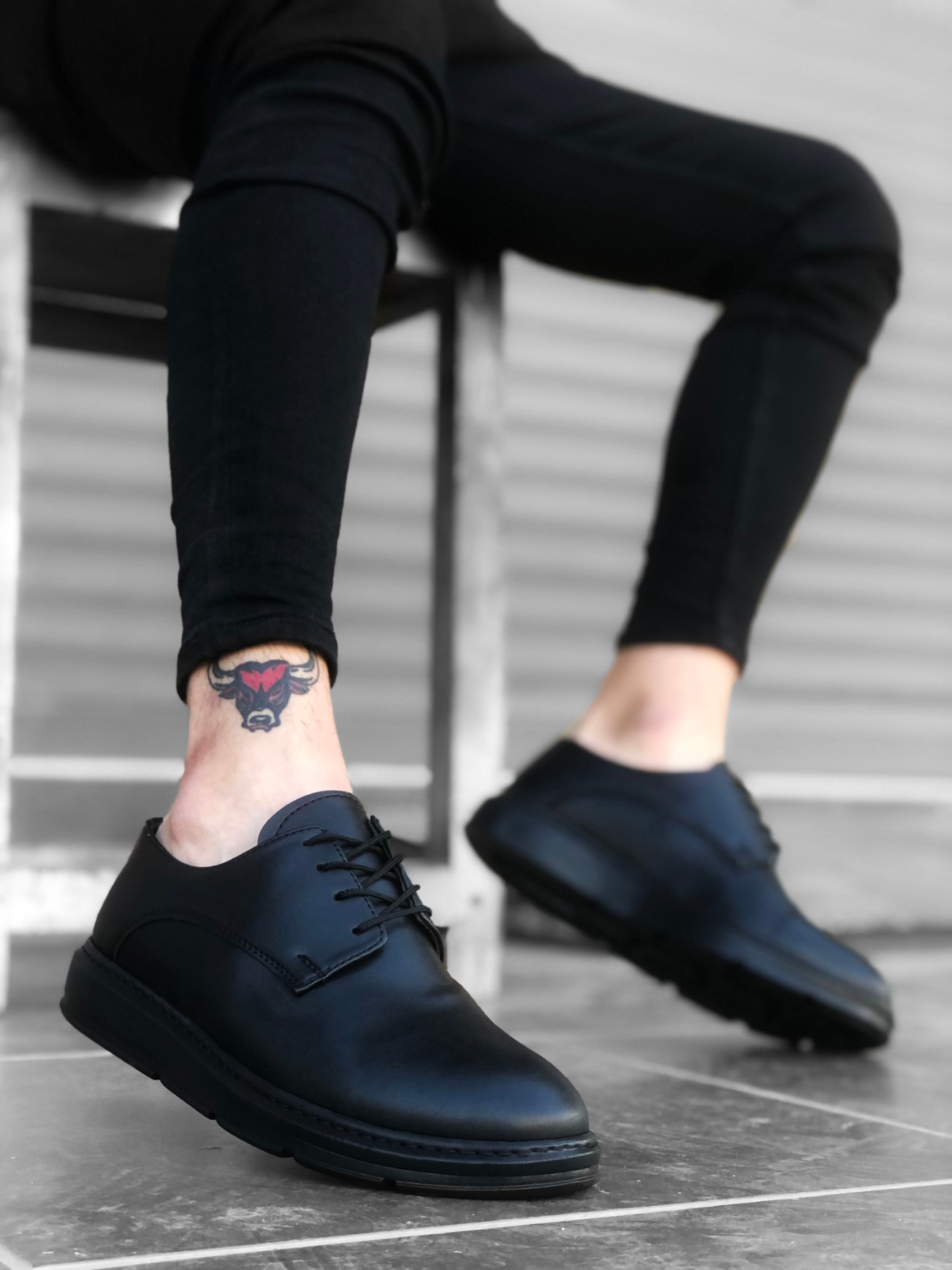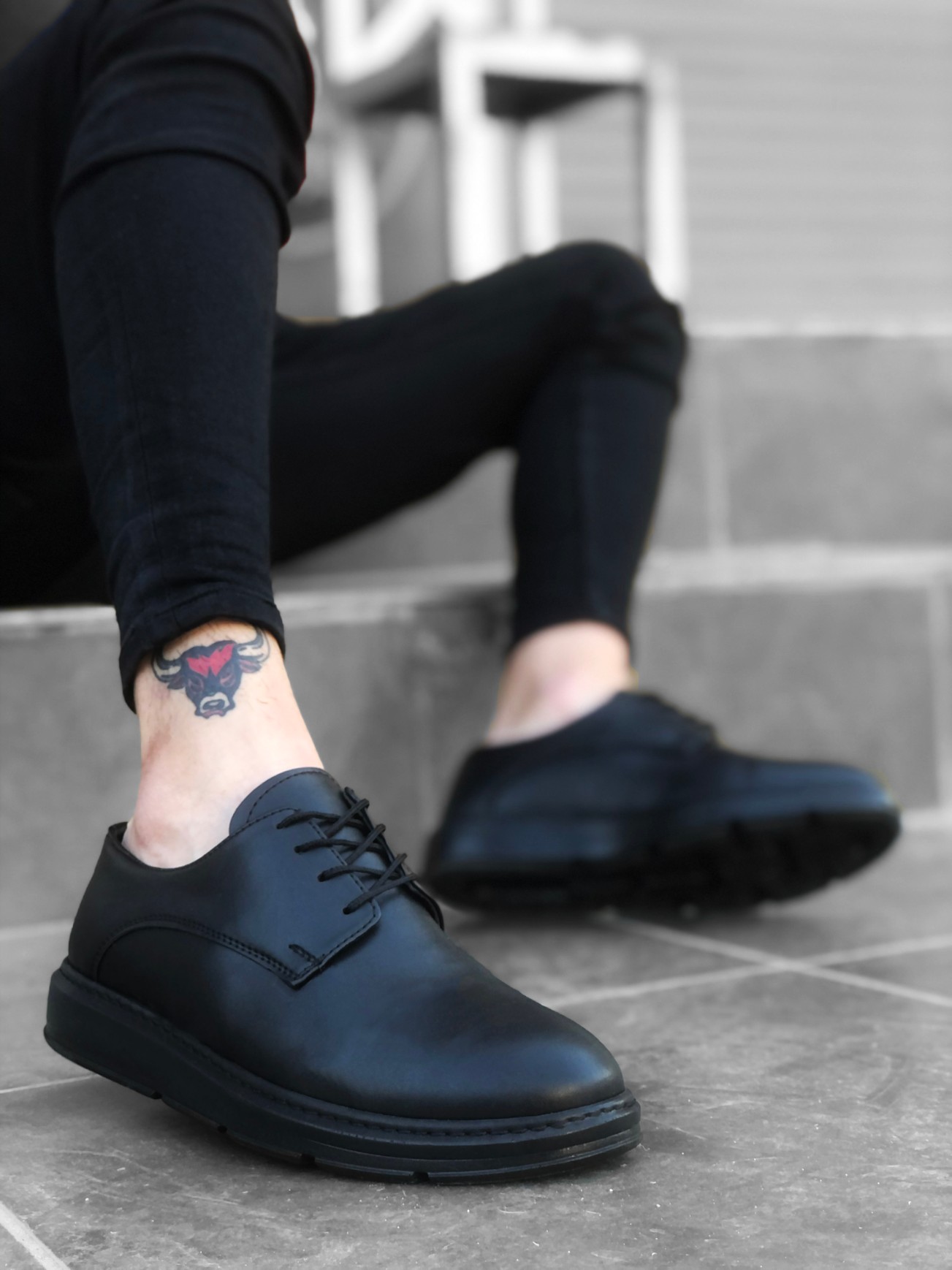 • Tugerdi Bağcıklı Klasik Siyah Yüksek Taban Siyah Günlük Tarz Erkek Ayakkabı TGE230153