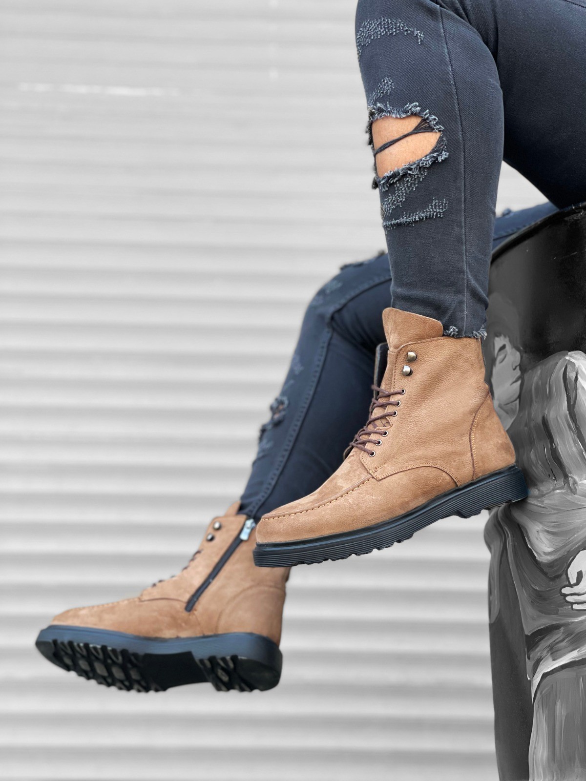 • Tugerdi Bağcıklı Fermuarlı İçi Dışı Hakiki Nubuk Deri Termo Taban Taba Erkek Bot TGE230362
