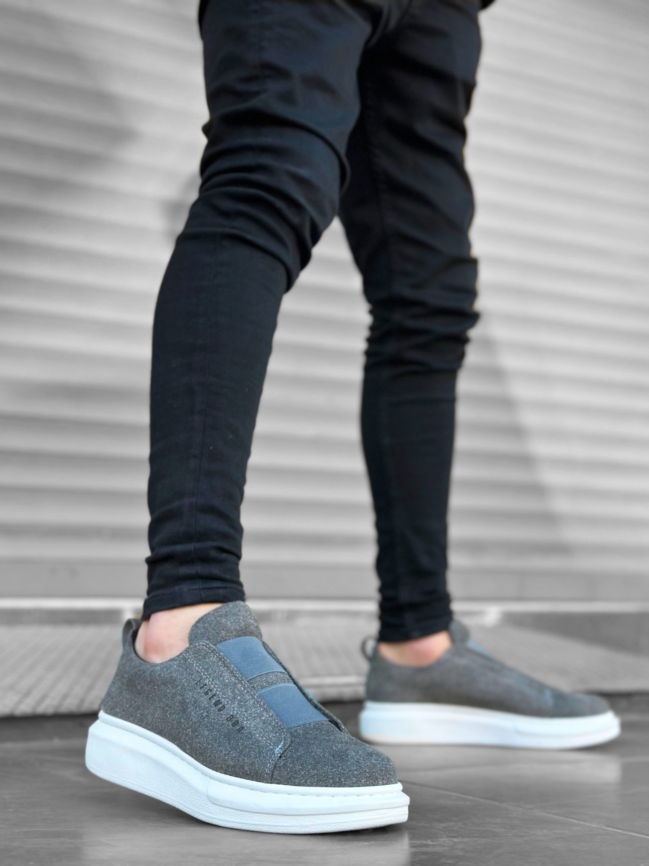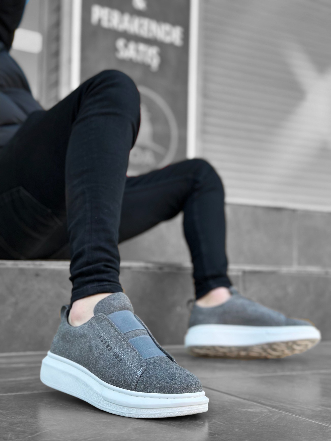 Tugerdi Kalın Beyaz Taban Süet Deri Yüksek Çift Bant Gri Erkek Spor Ayakkabı TGE230457