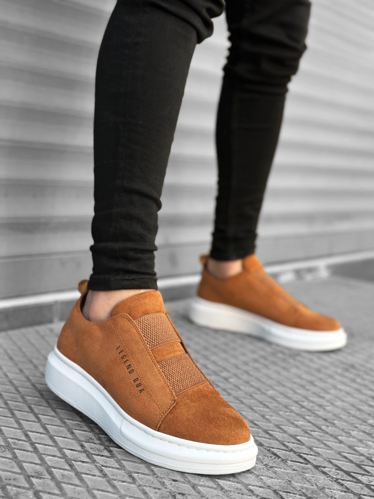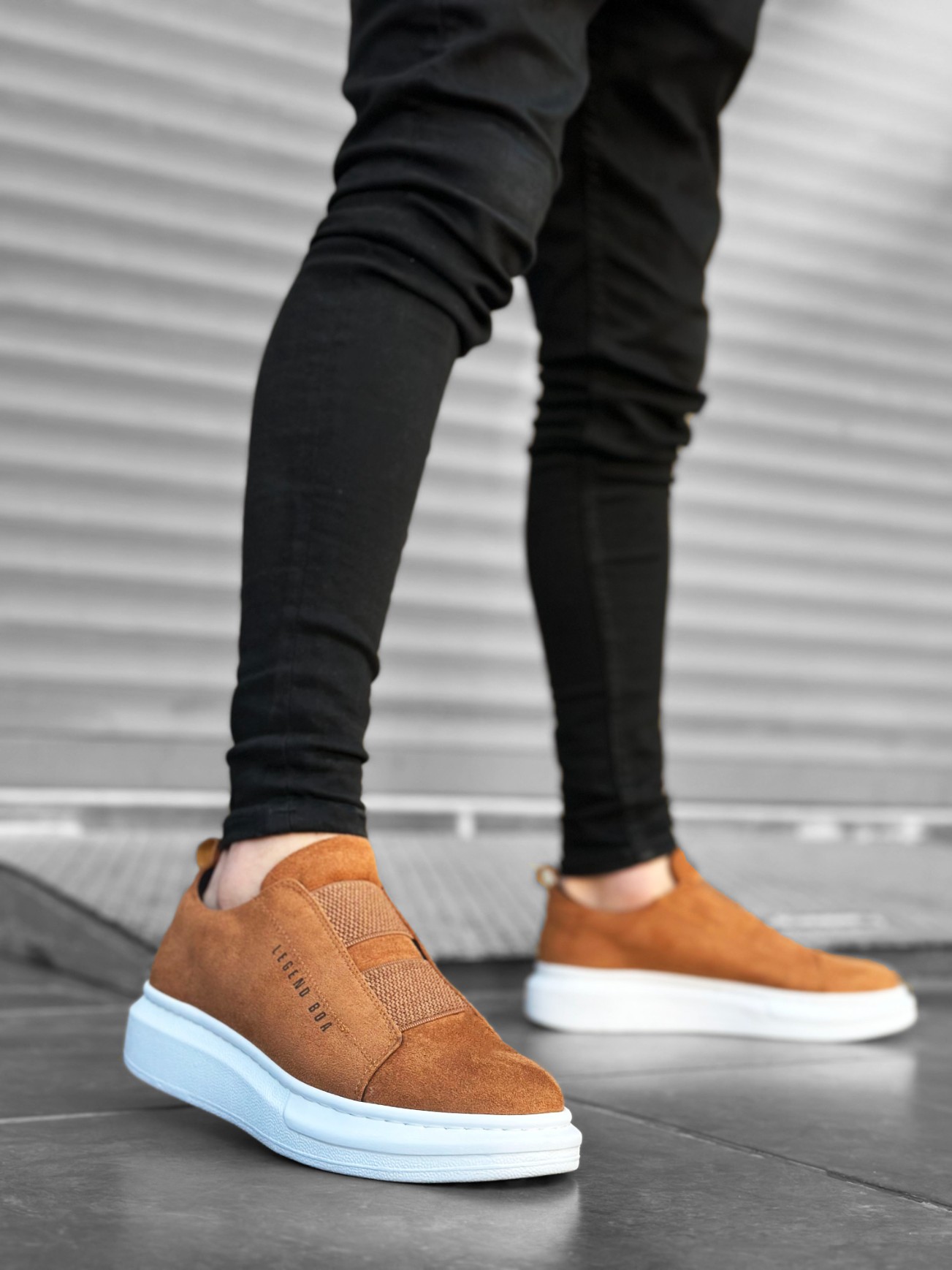 • Tugerdi Kalın Süet Deri Yüksek Taban Çift Bant Taba Beyaz Erkek Spor Ayakkabı TGE230457