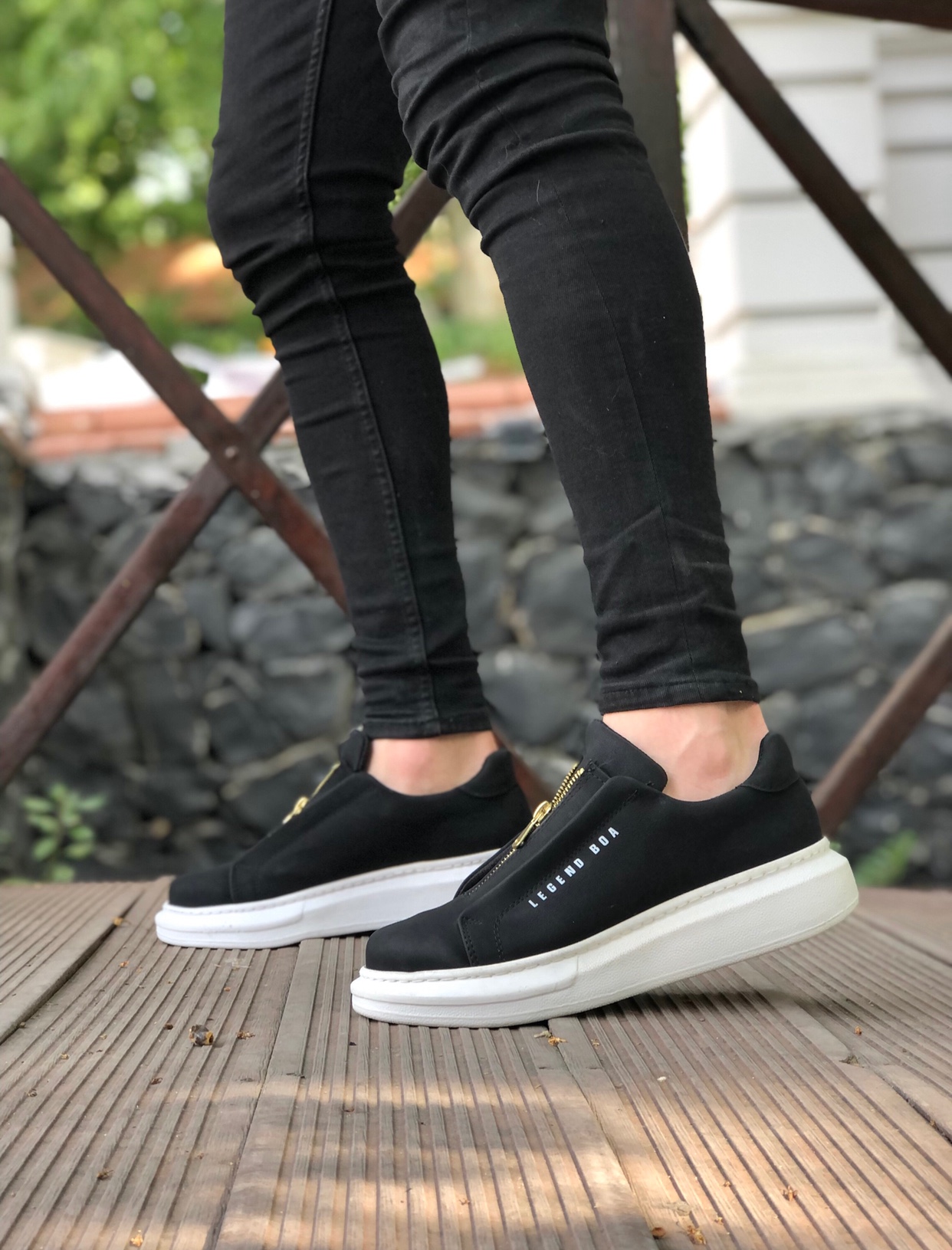 Tugerdi Kalın Yüksek Beyaz Taban Fermuarlı Siyah Günlük Tarz Erkek Spor Ayakkabı TGE230310