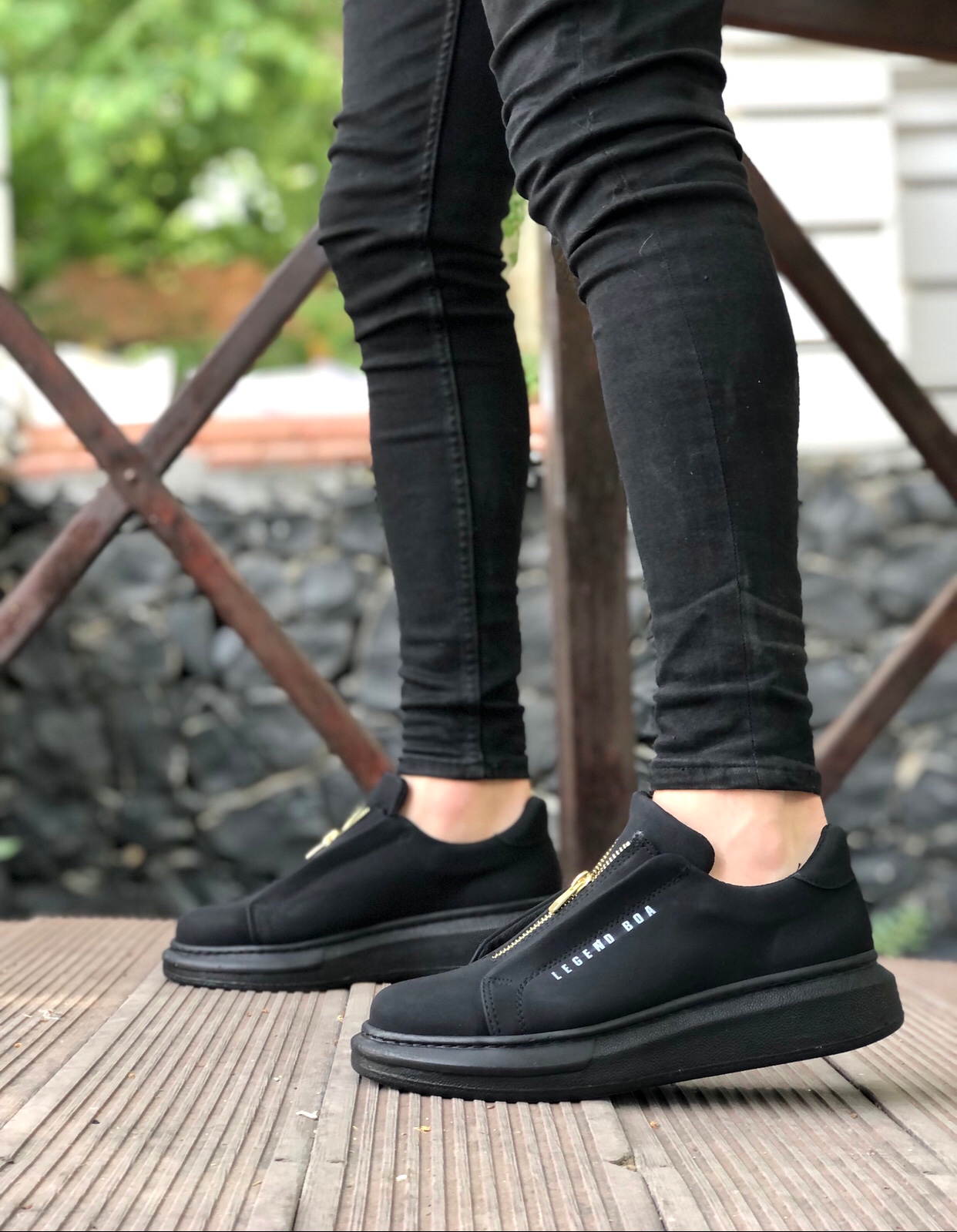 Tugerdi Kalın Yüksek Siyah Taban Fermuarlı Siyah Günlük Tarz Erkek Spor Ayakkabı TGE230310