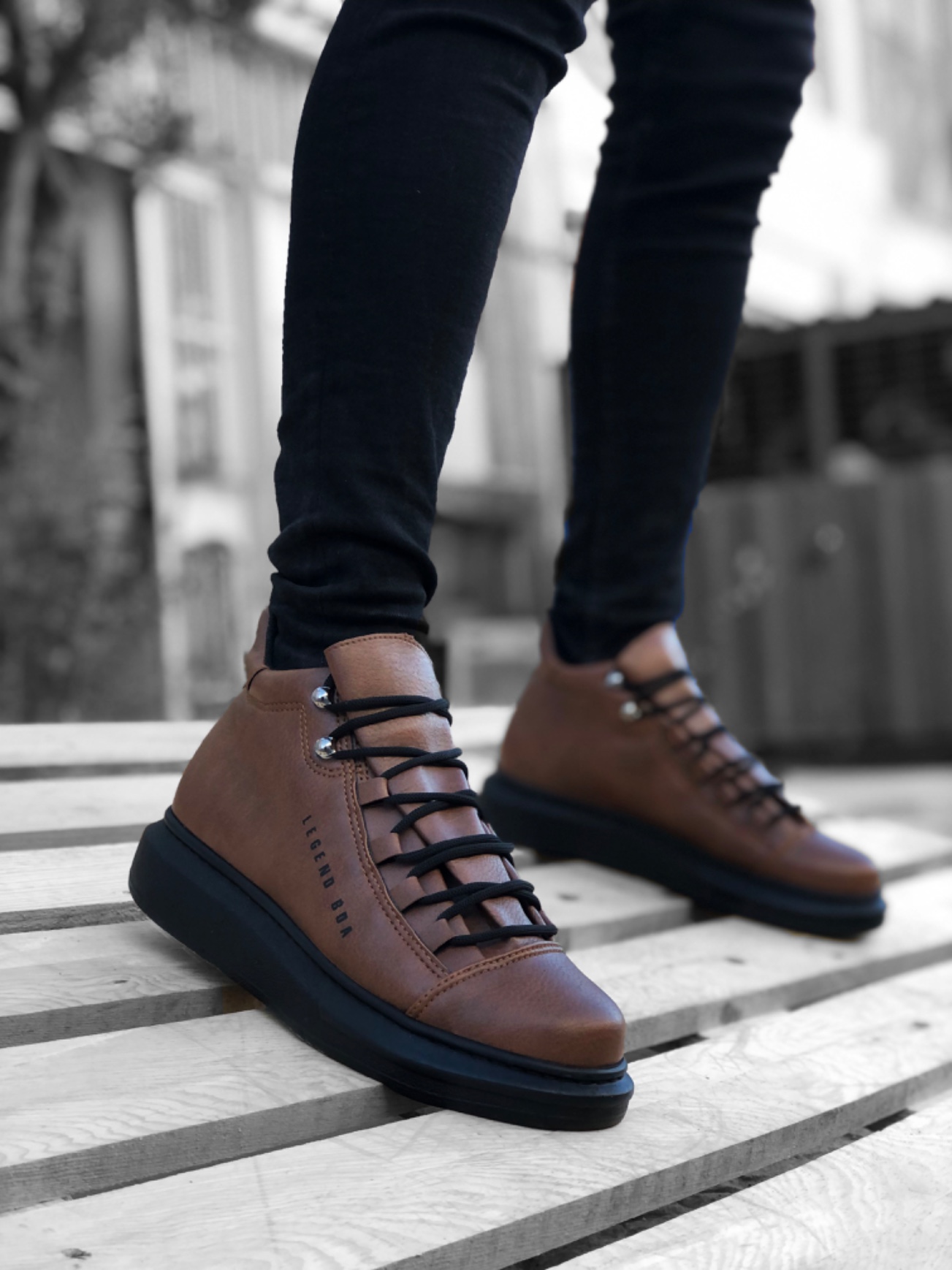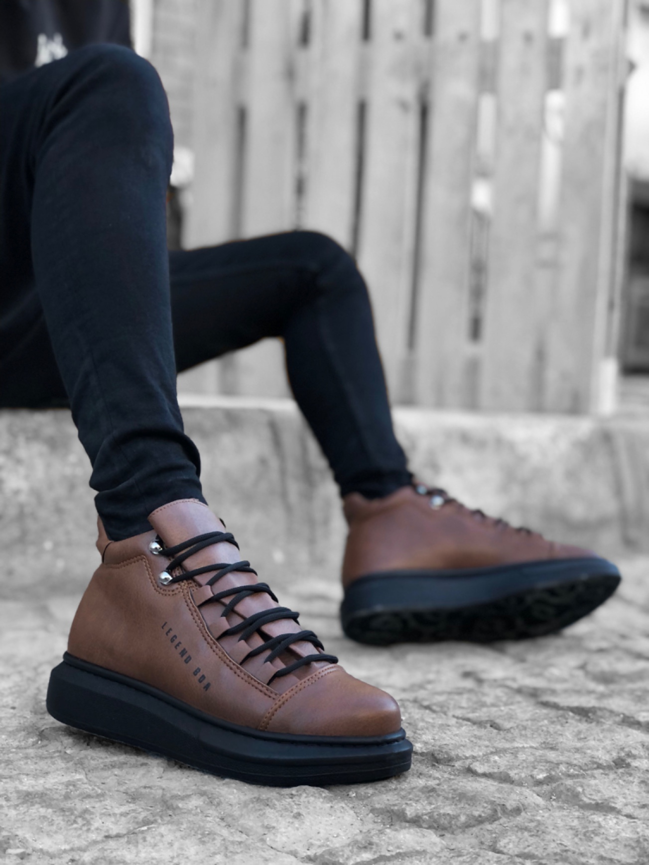 Tugerdi Bağcıklı Cilt Deri Yüksek Siyah Taban Taba Erkek Tarz Spor Bot TGE230462