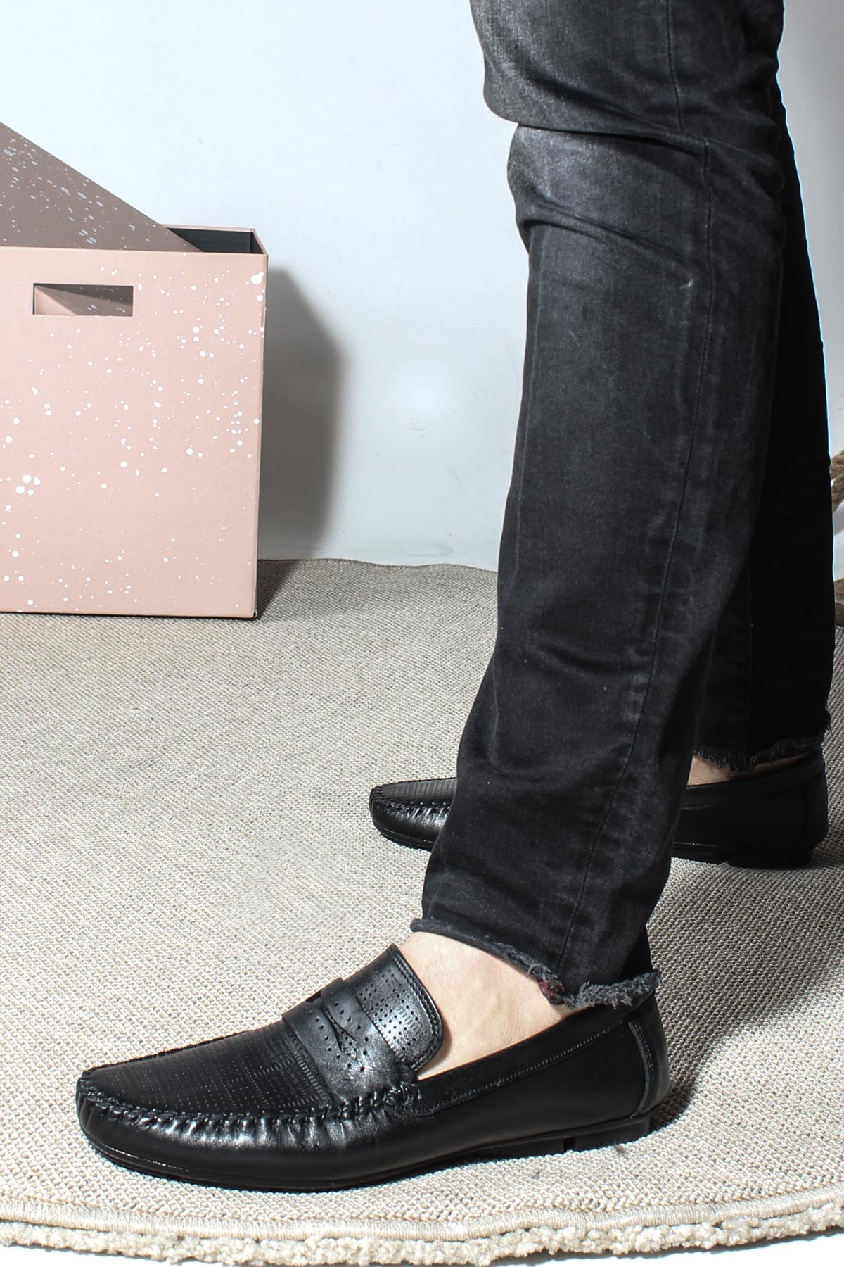 • Tugerdi Siyah Hakiki Deri Termo Taban Kaliteli Erkek Loafer Babet Ayakkabı TG09858131716
