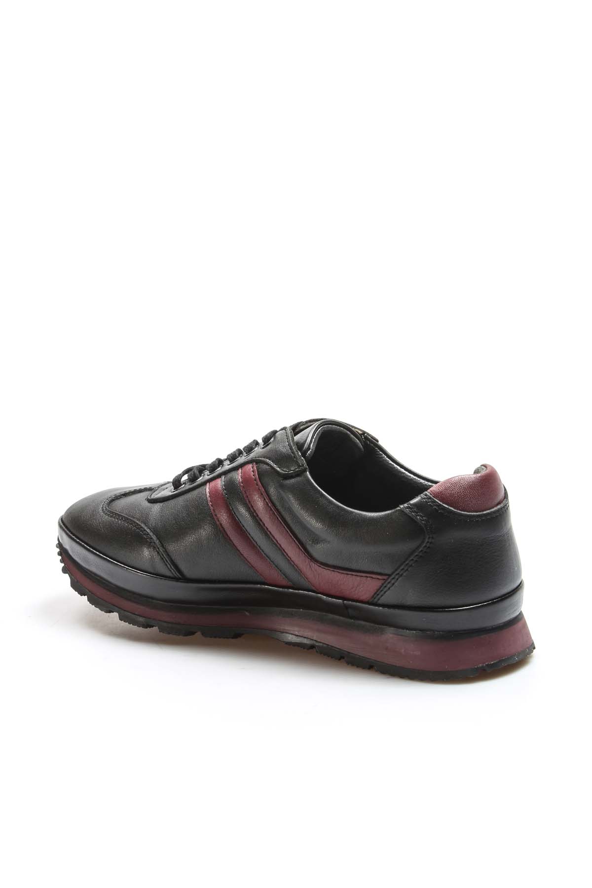 Tugerdi Hakiki Deri Siyah Bordo Ortopedik Bağcıklı Erkek Spor Ayakkabı TG09662711306