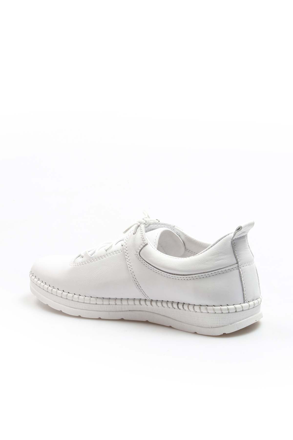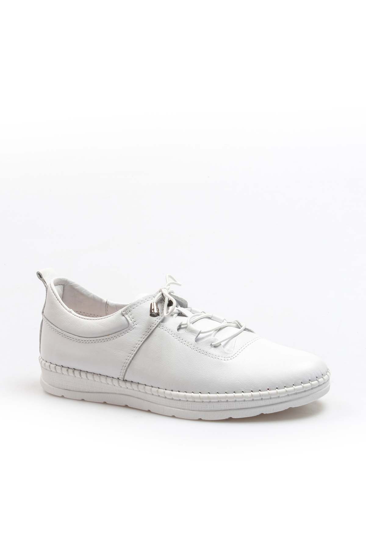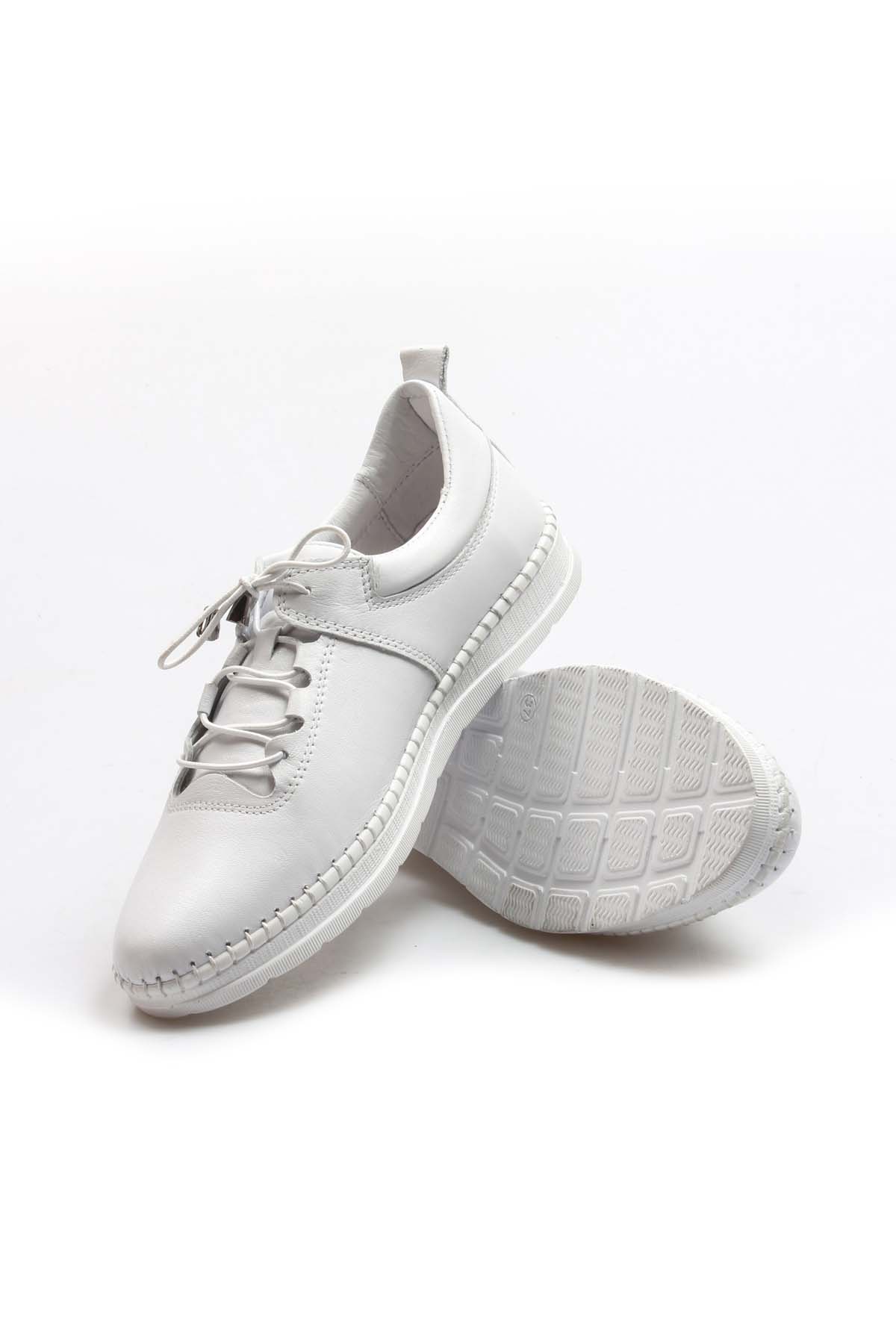 Tugerdi Hakiki Deri Beyaz Hafif Taban Bağcıklı Rahat Kadın Günlük Ayakkabı TG09934261410