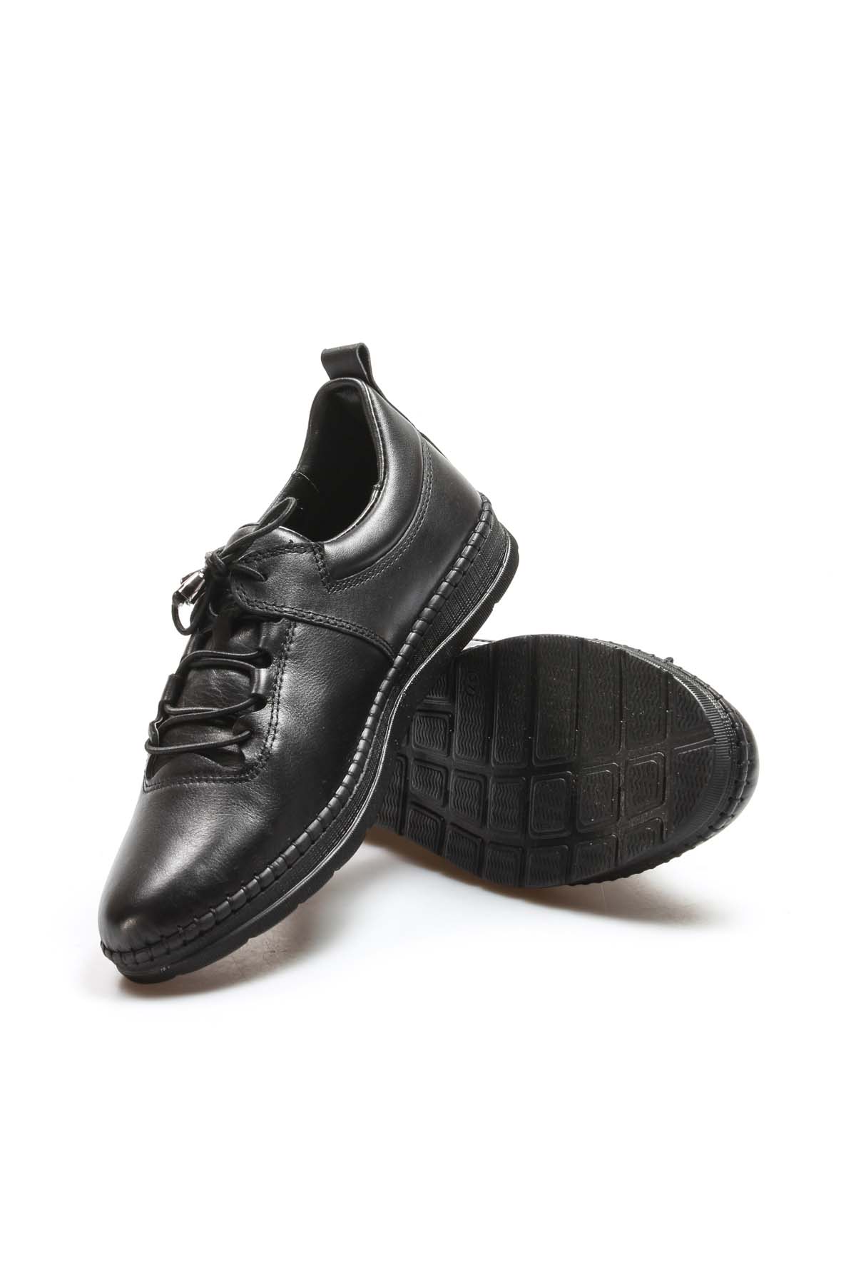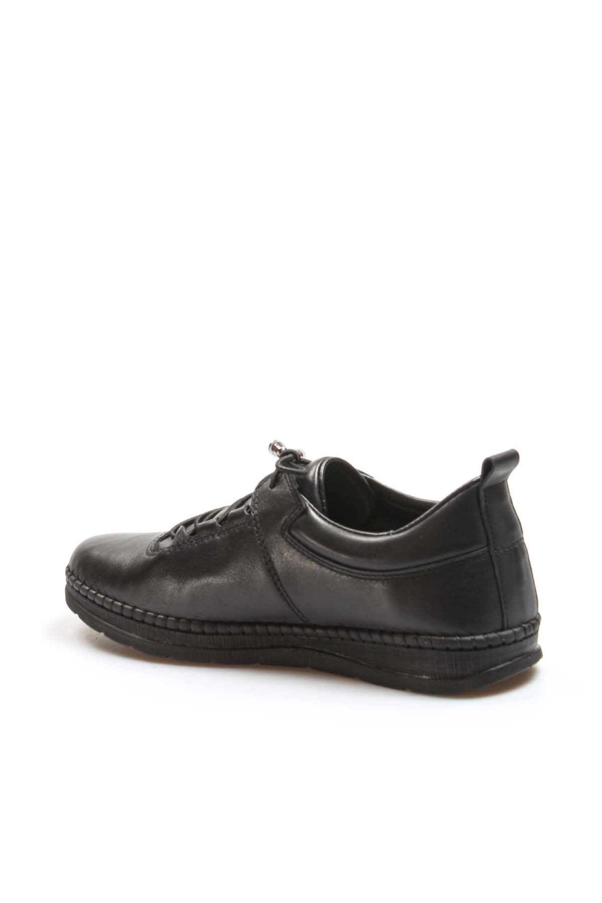 Tugerdi Hakiki Deri Siyah Hafif Taban Bağcıklı Rahat Kadın Günlük Ayakkabı TG09934261410