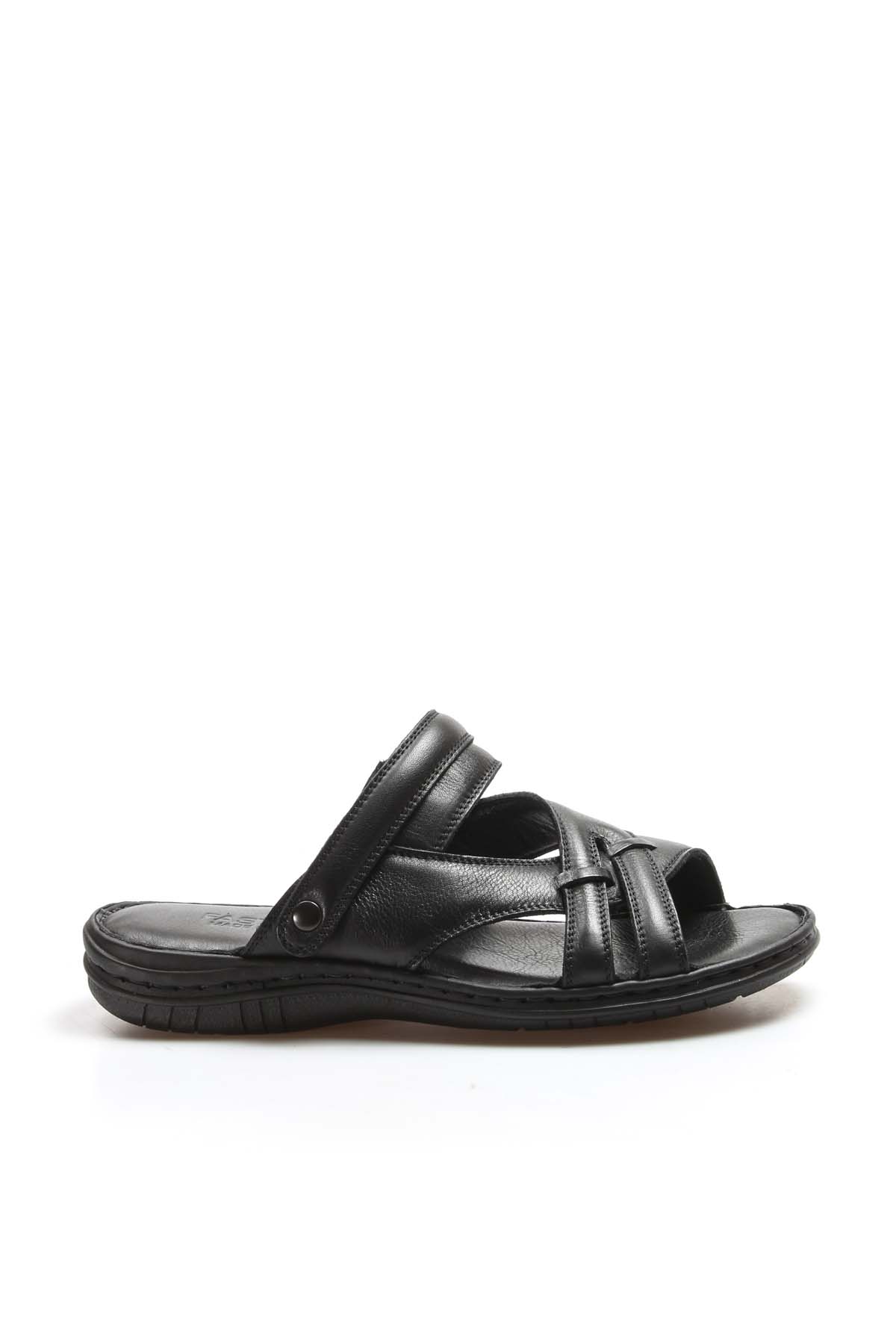 Tugerdi Hakiki Deri Siyah Kauçuk Taban Kaliteli Klasik Erkek Sandalet TG099521311015