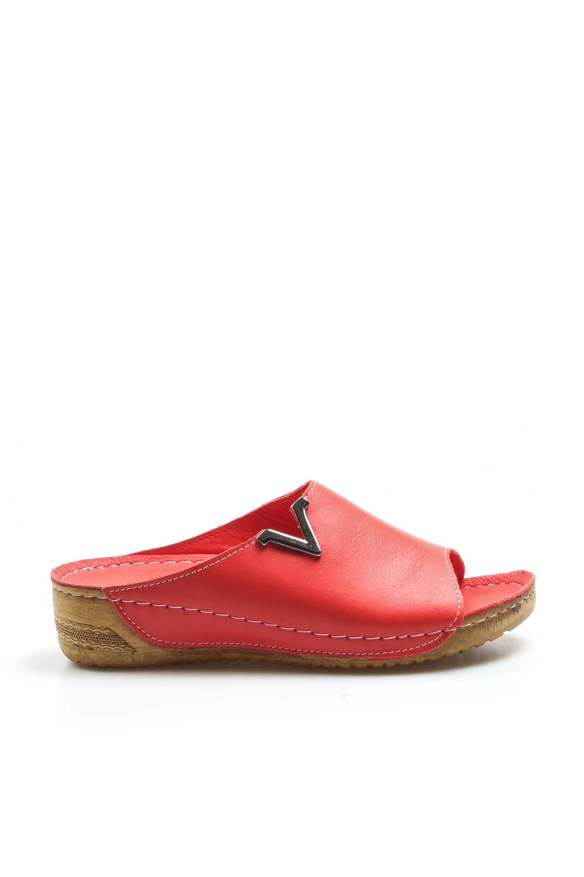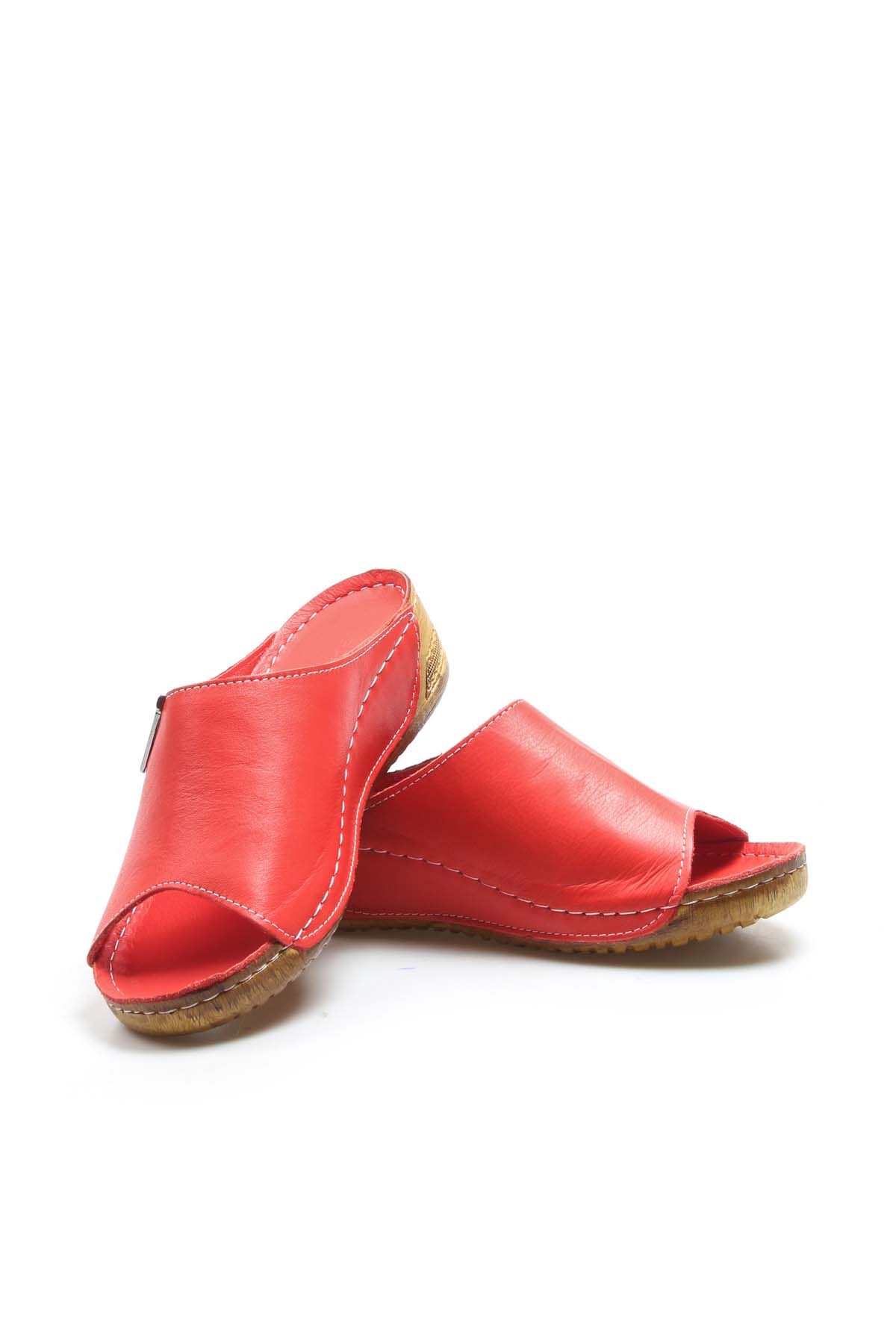 Tugerdi Hakiki Deri Kırmızı Hazır Taban Kısa Dolgu Topuklu Kadın Terlik TG09972261516