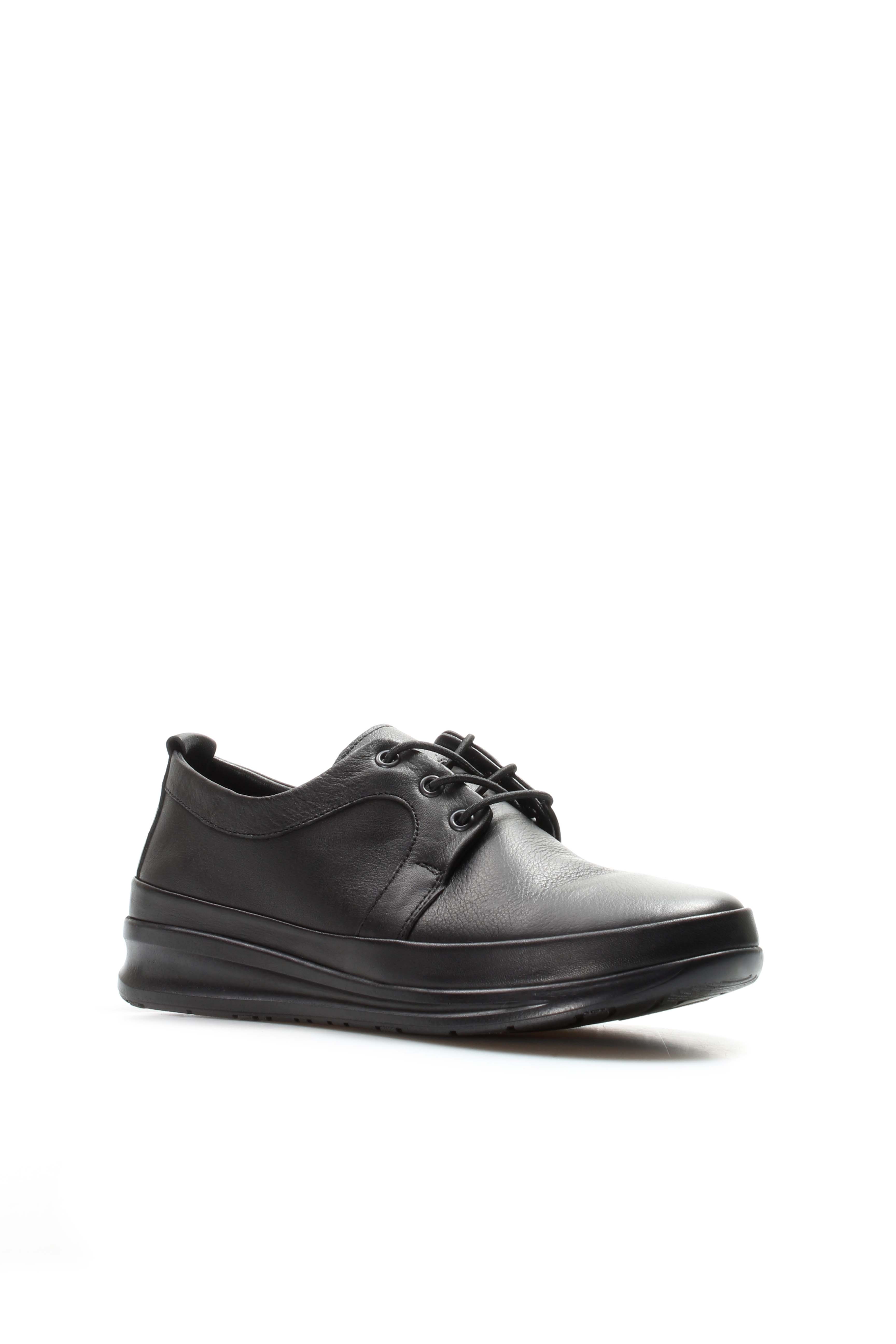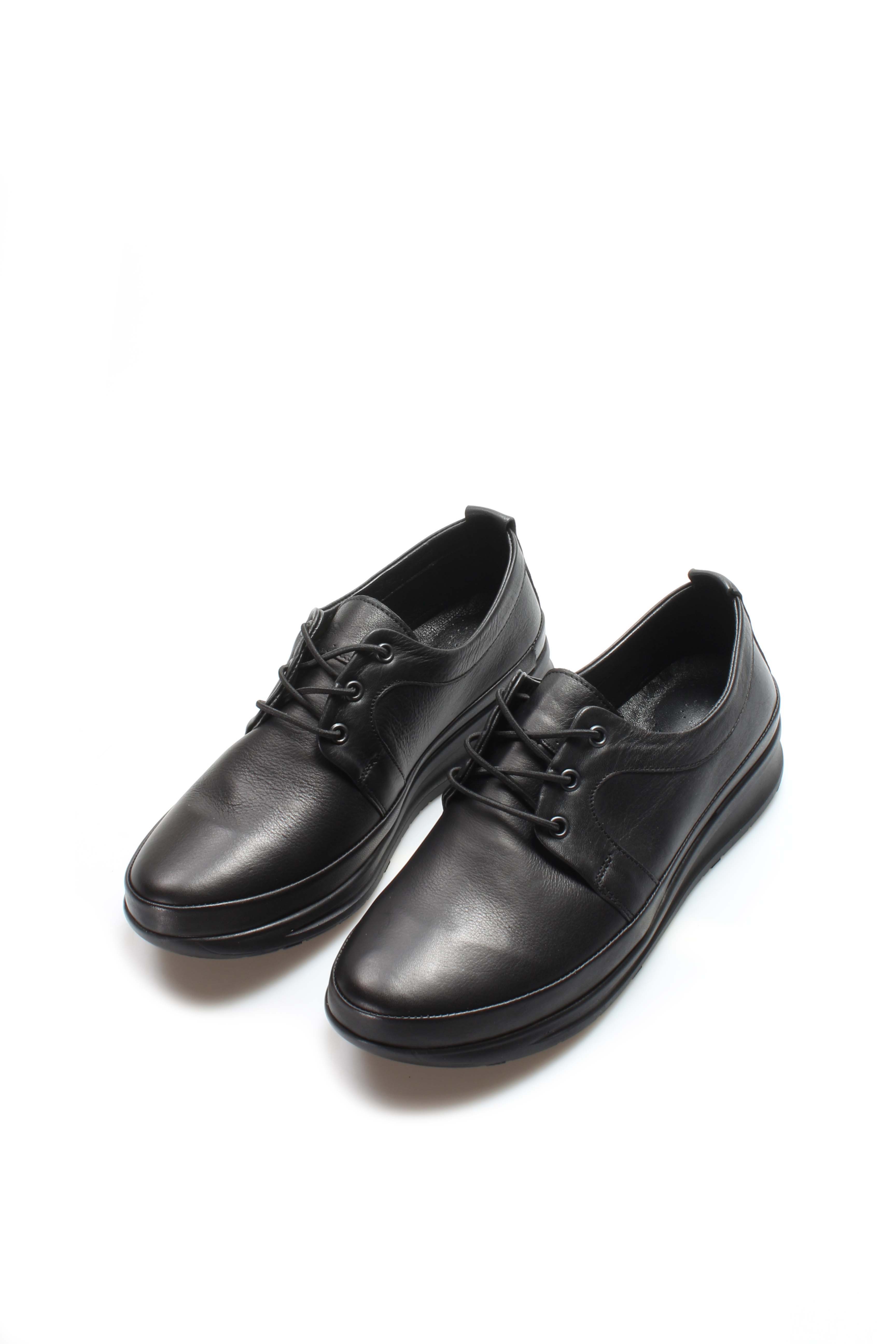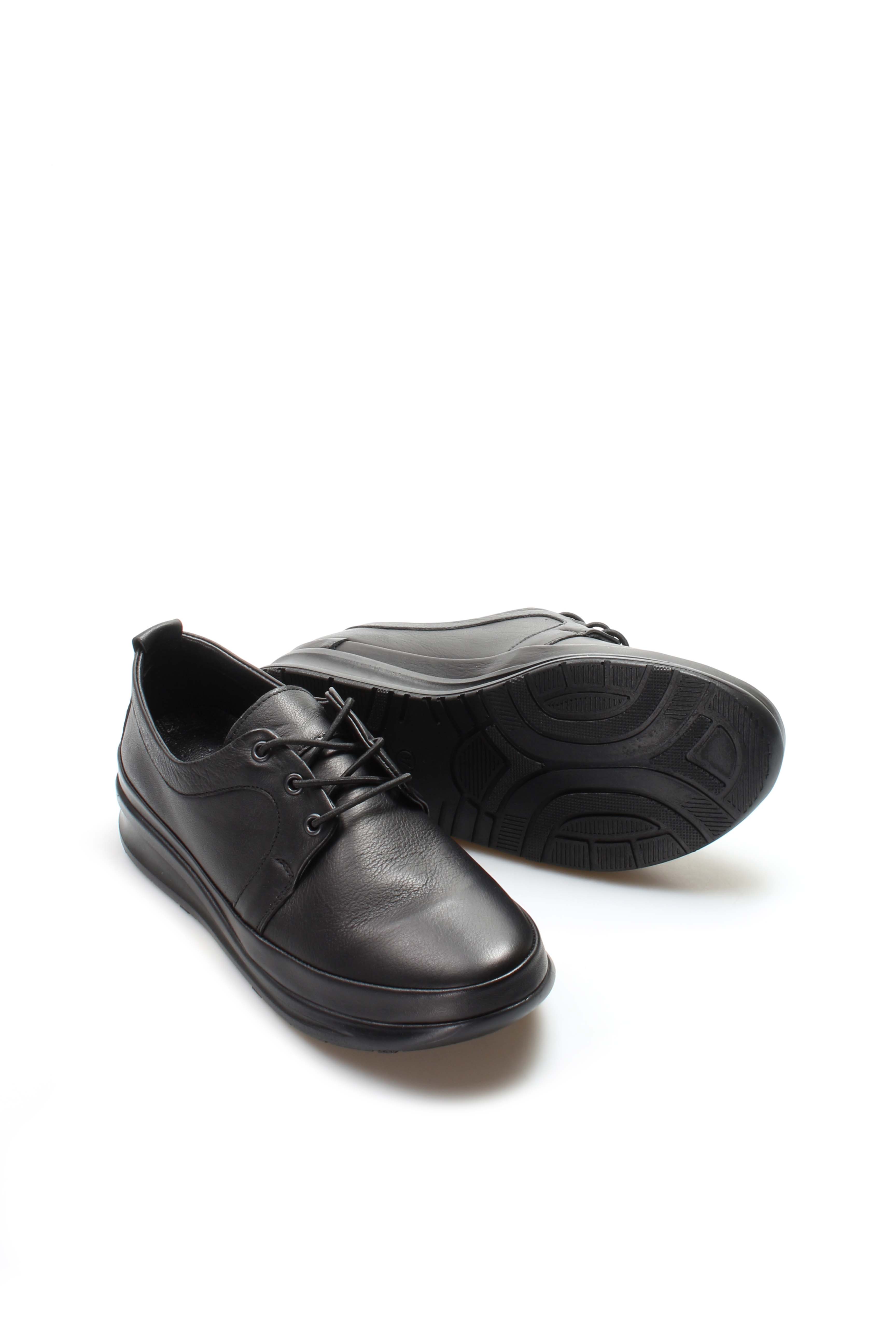 • Tugerdi Hakiki Deri Siyah Hafif Taban Bağcıklı Kadın Günlük Ayakkabı TG098642611508