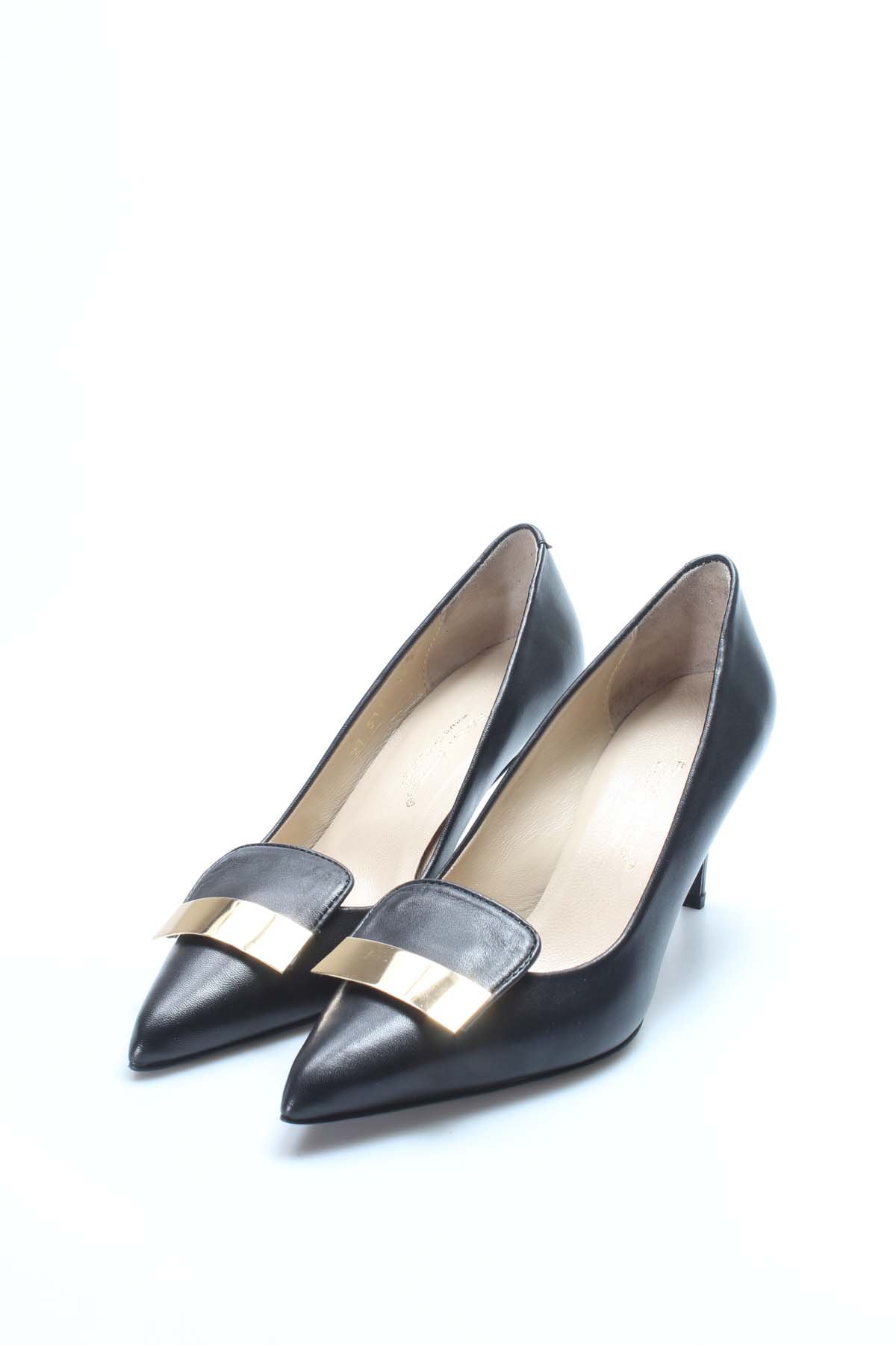 • Tugerdi Hakiki Deri Siyah Jurdan Taban Tokalı İnce Topuk Kadın Ayakkabı TG0901926426-514