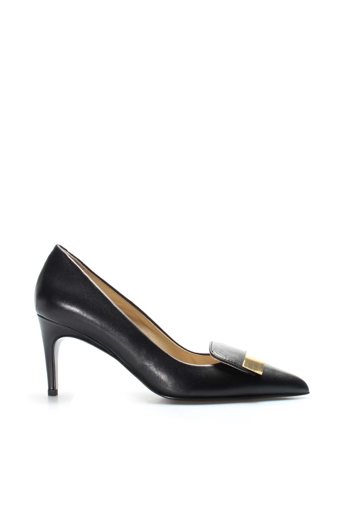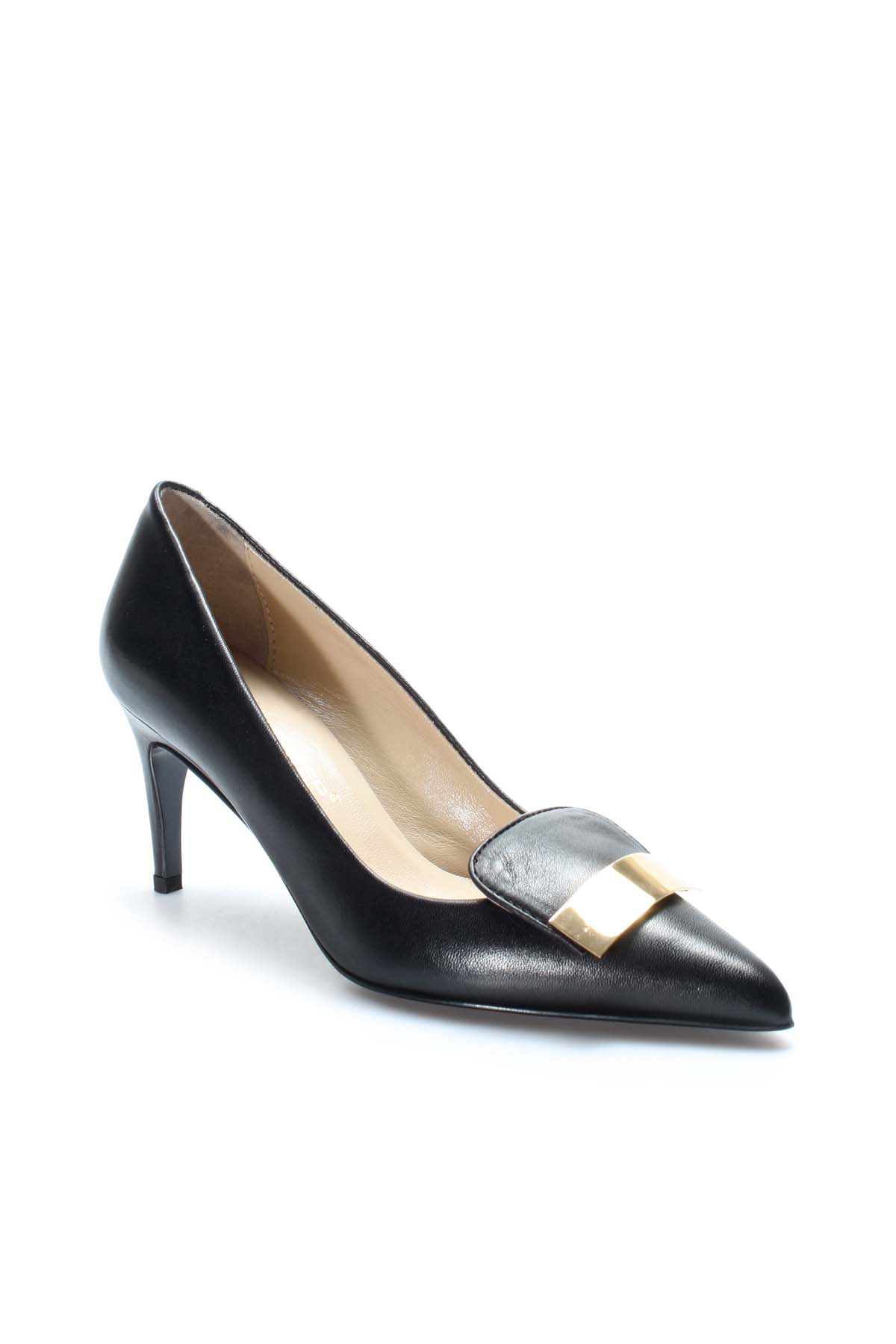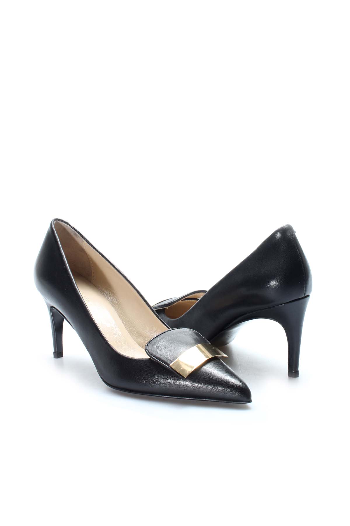 Tugerdi Hakiki Deri Siyah Jurdan Taban Tokalı İnce Topuk Kadın Ayakkabı TG0901926426-514