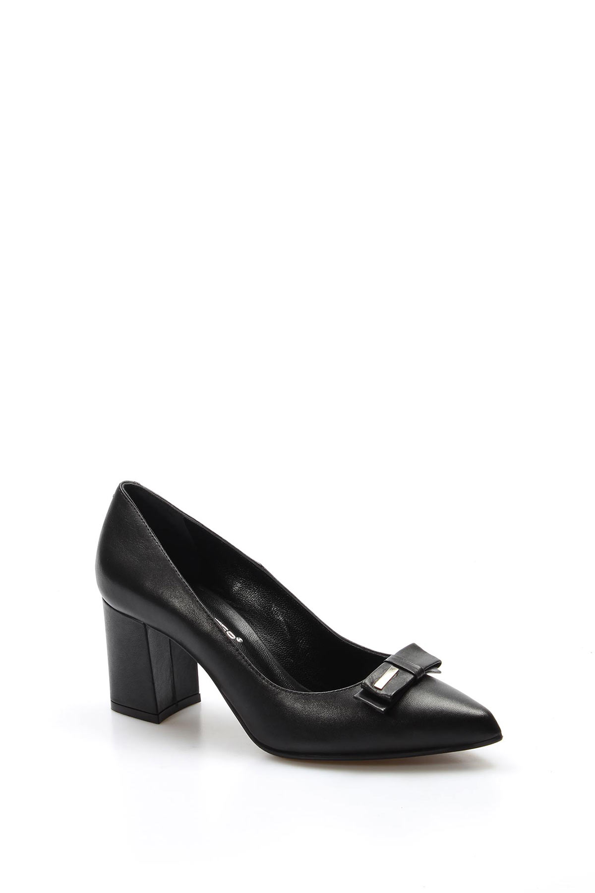 Tugerdi Hakiki Deri Siyah Tokalı Klasik Kalın Topuklu Kadın Ayakkabı TG090192618374