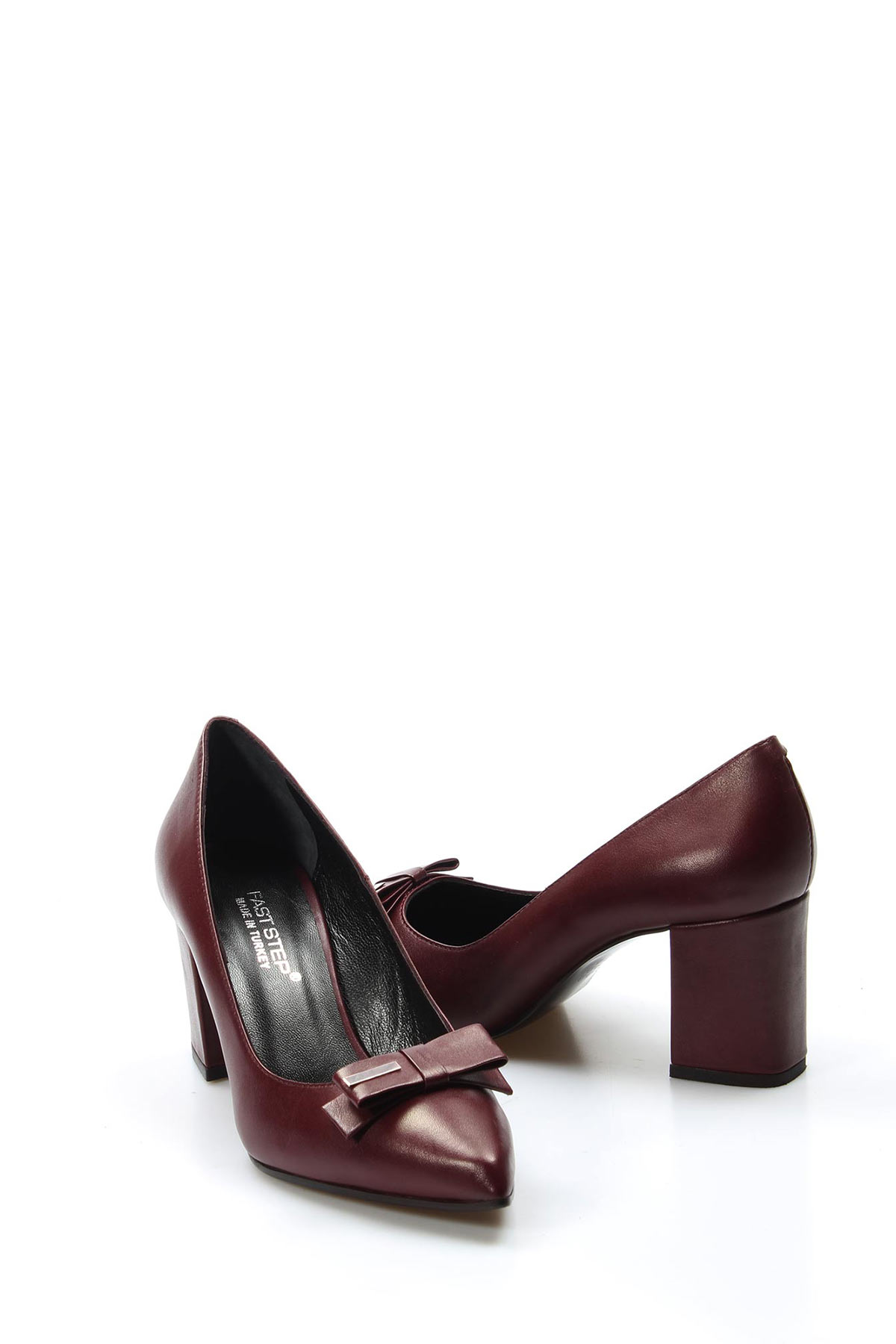 Tugerdi Hakiki Deri Bordo Tokalı Klasik Kalın Topuklu Kadın Ayakkabı TG090192618374