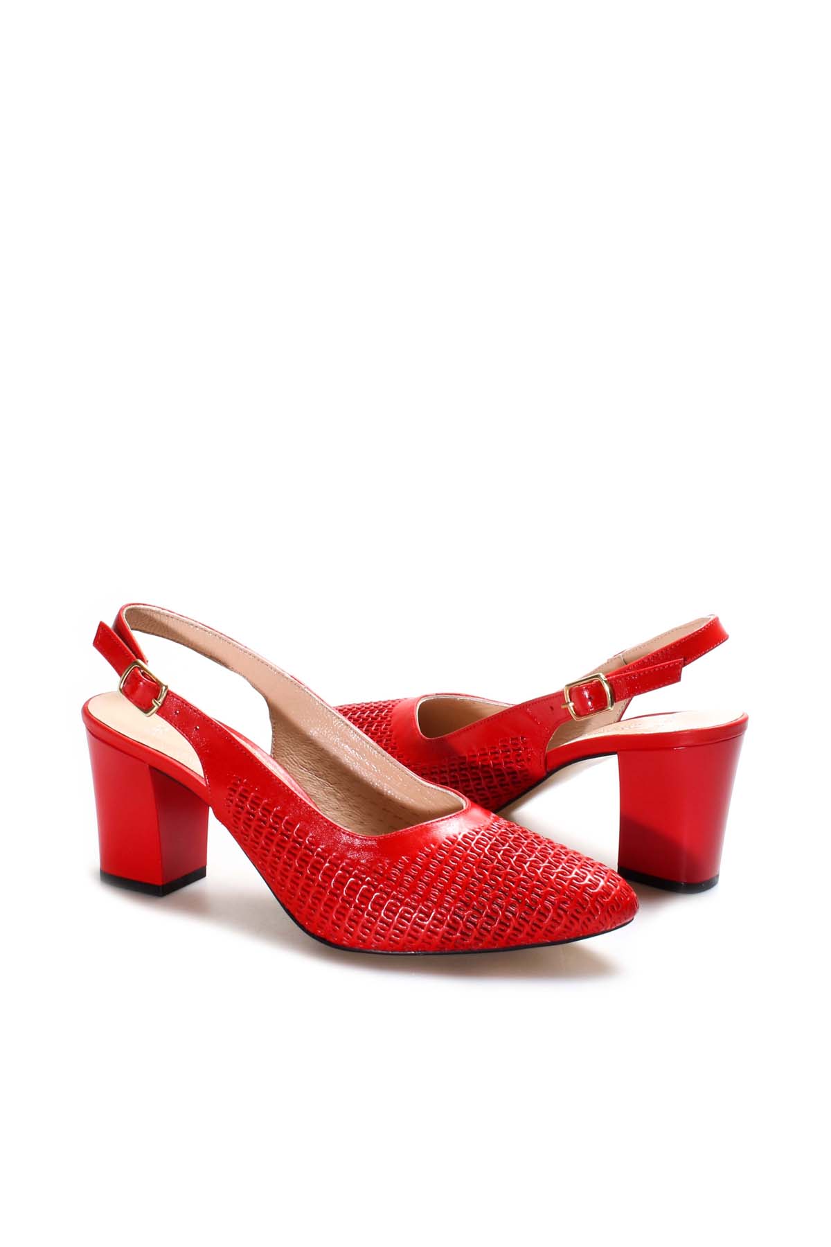 Tugerdi Hakiki Deri Kırmızı Jurdan Taban Kalın Topuklu Şık Kadın Ayakkabı TG09064261665