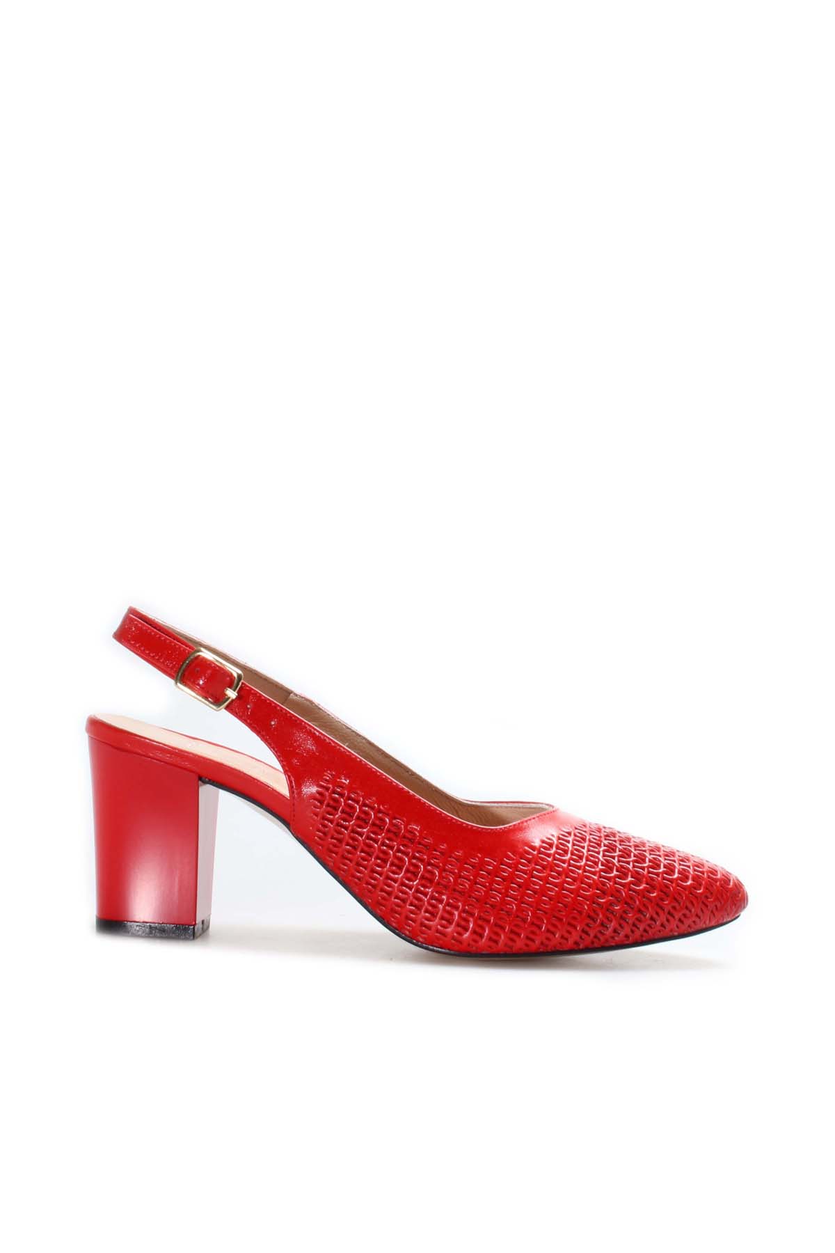 • Tugerdi Hakiki Deri Kırmızı Jurdan Taban Kalın Topuklu Şık Kadın Ayakkabı TG09064261665