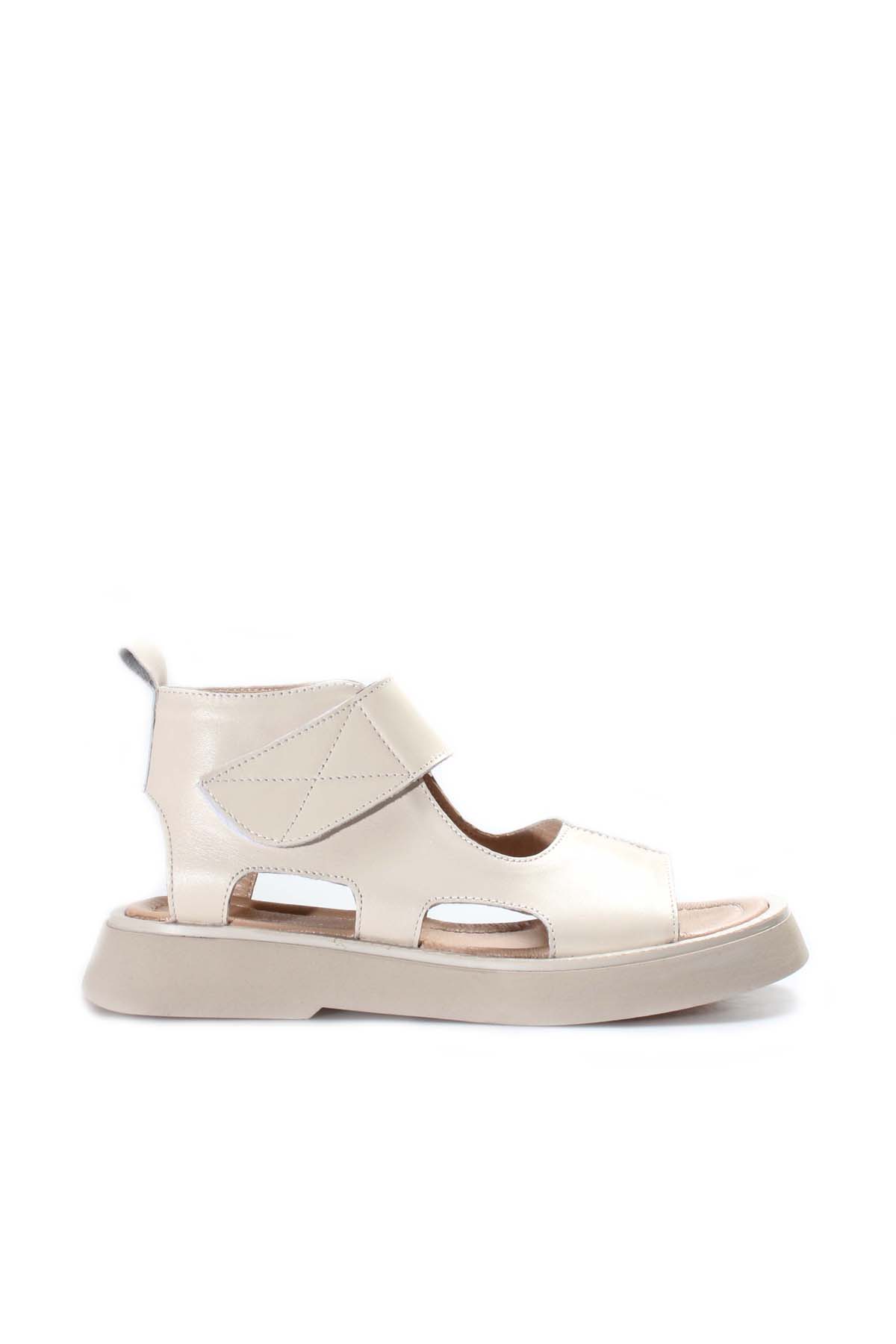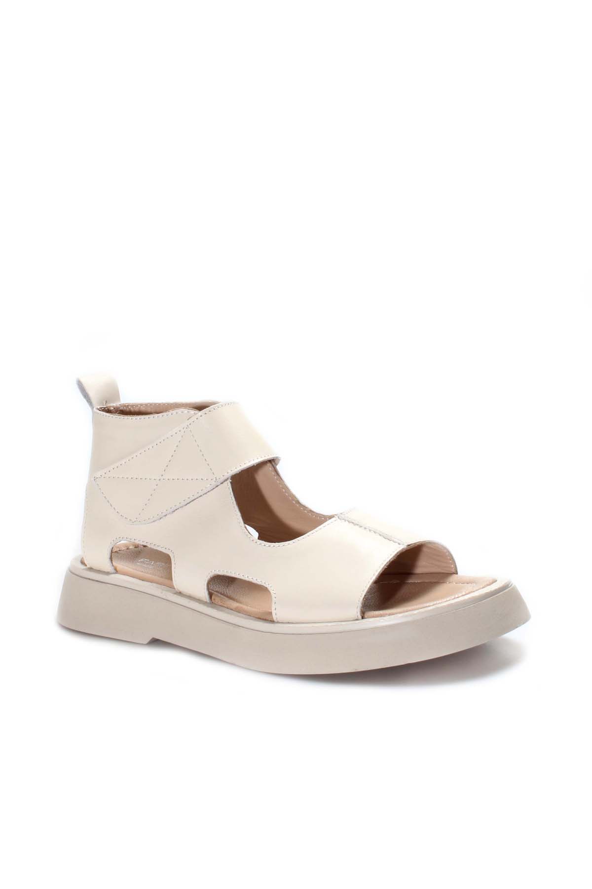 Tugerdi Hakiki Deri Bej Hafif Kalın Taban Topuklu Kadın Sandalet TG09281261201060