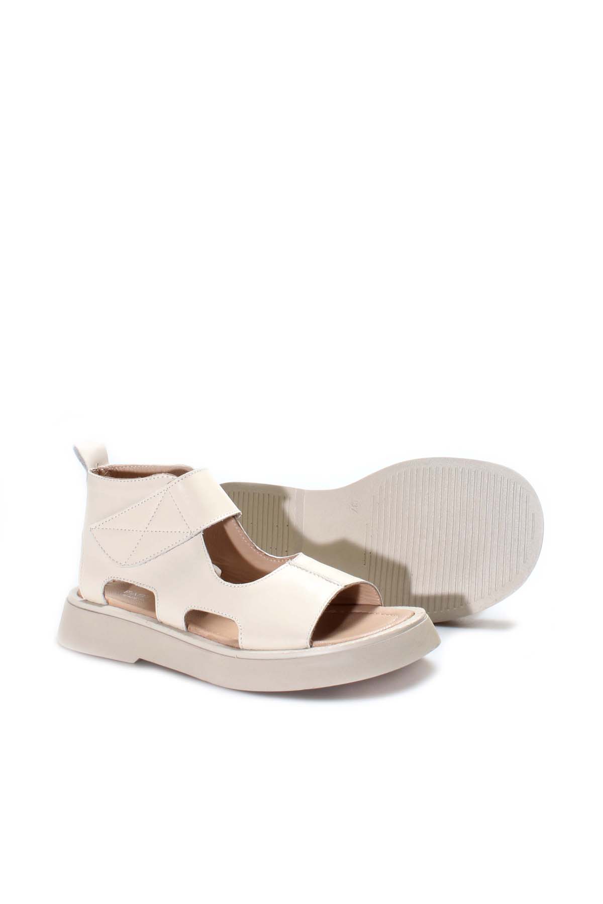 • Tugerdi Hakiki Deri Bej Hafif Kalın Taban Topuklu Kadın Sandalet TG09281261201060