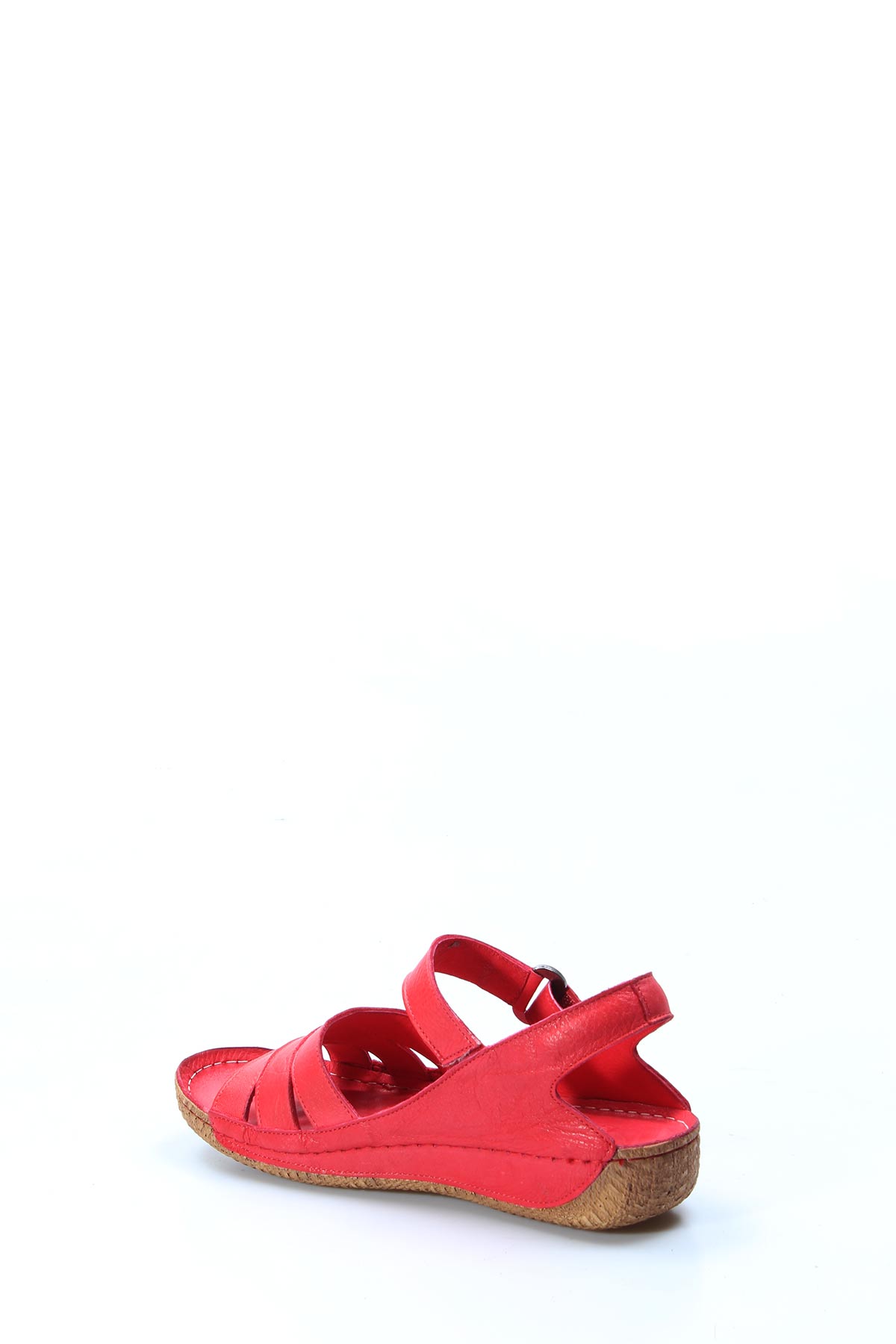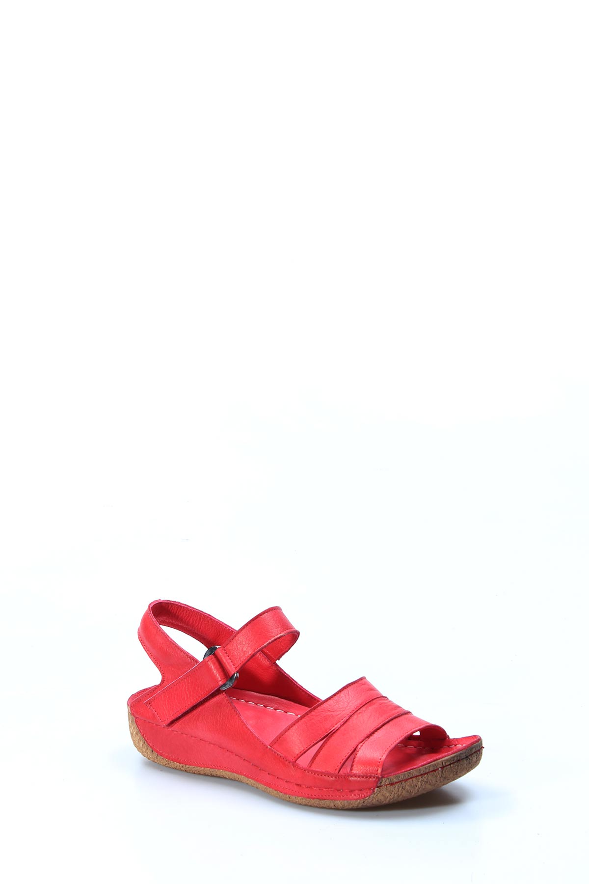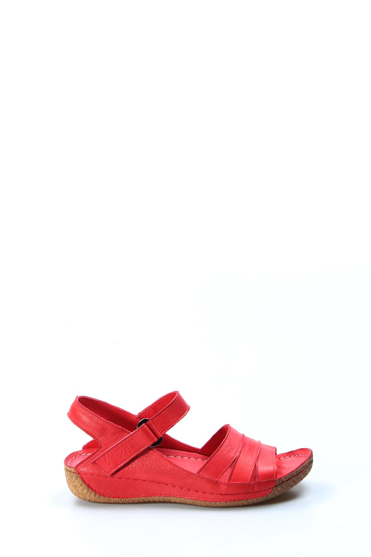 • Tugerdi Hakiki Deri Nar Çiçeği Hafif Taban Kısa Dolgu Topuklu Kadın Sandalet TG0976326410