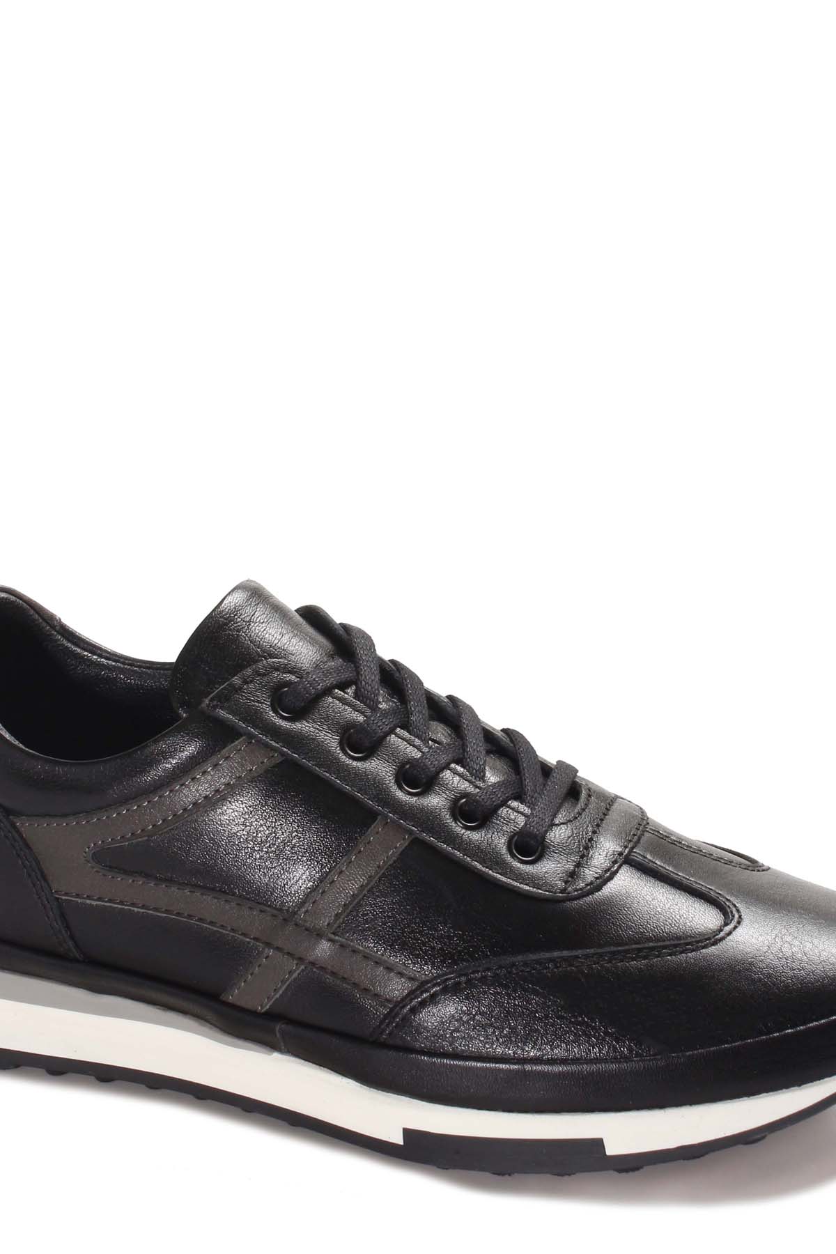 Tugerdi Kaliteli Hakiki Deri Siyah Gri Kauçuk Taban Erkek Spor Ayakkabı TG098551311624