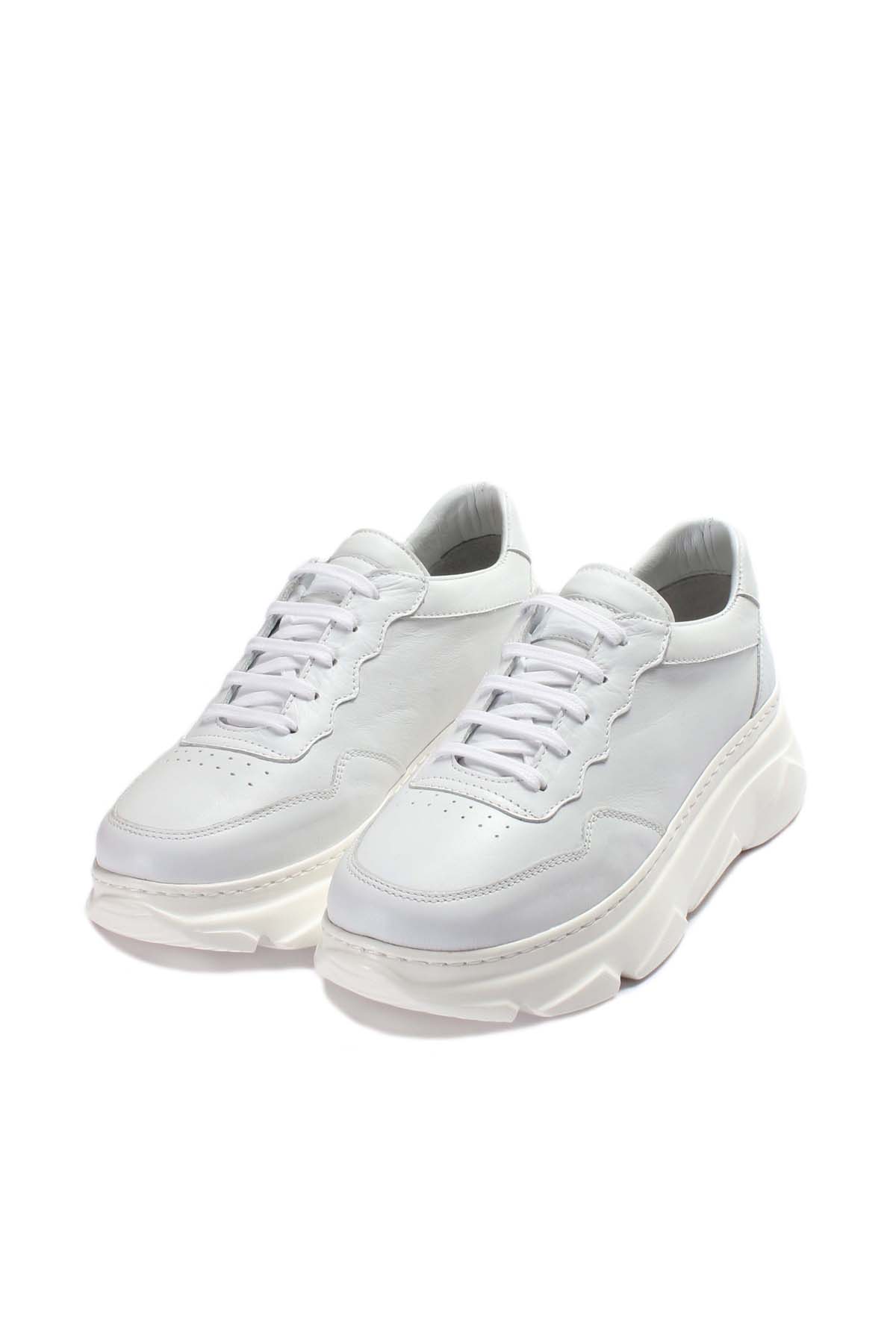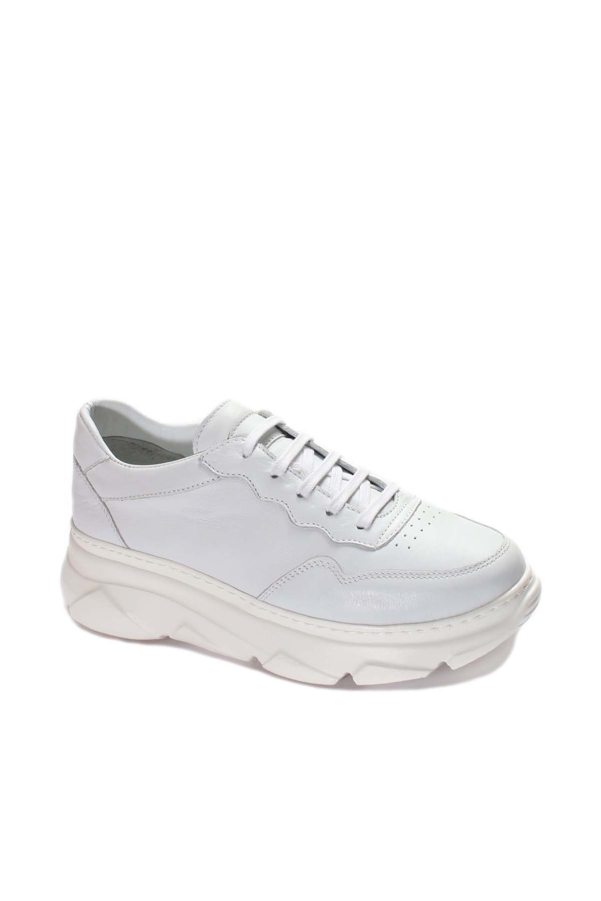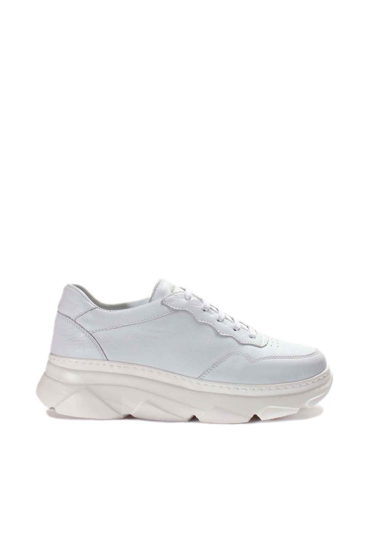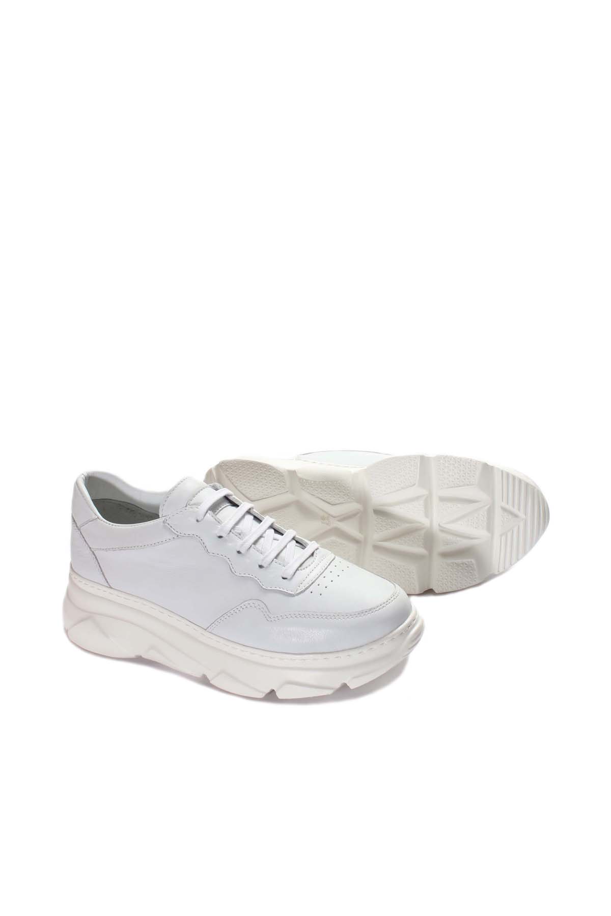 Tugerdi Hakiki Deri Beyaz Yüksek Taban Bağcıklı Kadın Spor Ayakkabı TG09934261427