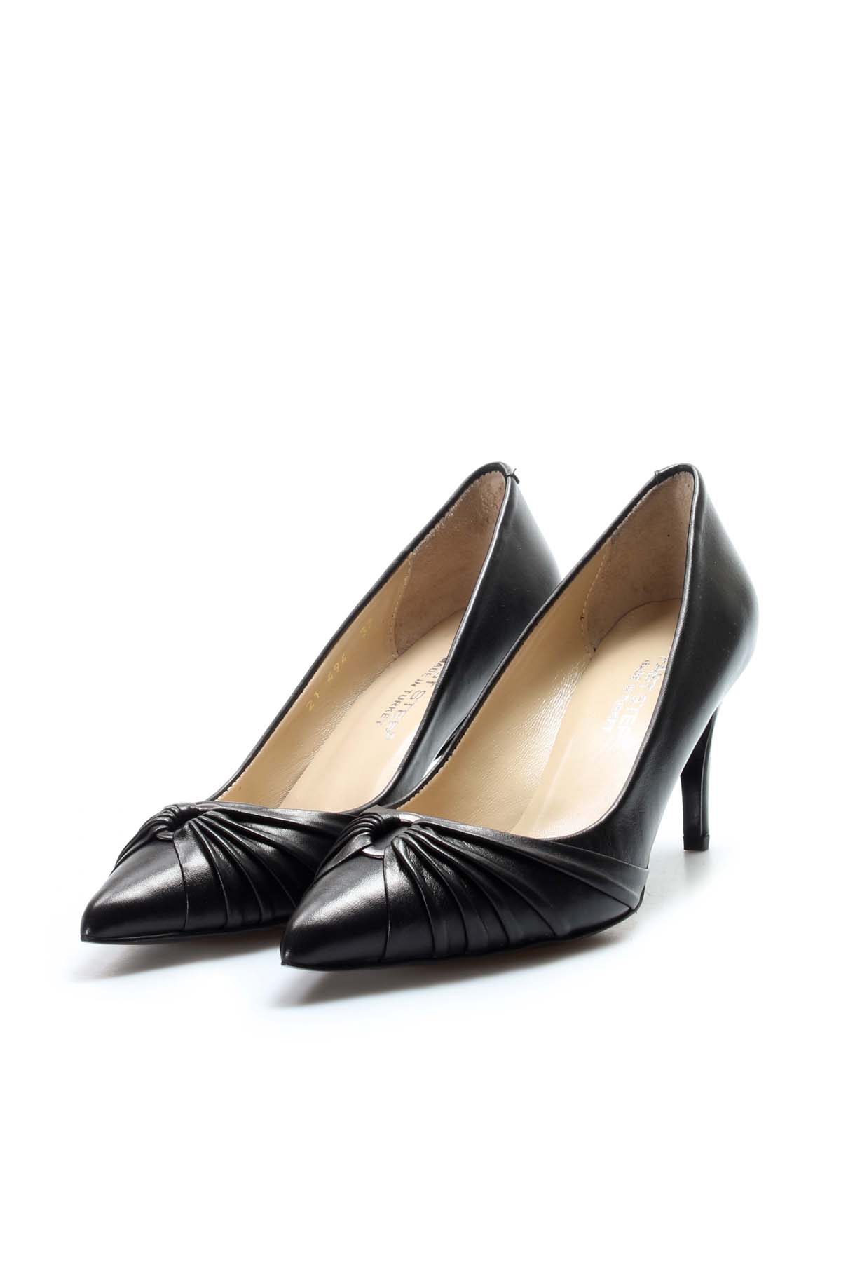 Tugerdi Hakiki Deri Siyah Jurdan Taban İnce Topuk Şık Kadın Ayakkabı TG0901926426-494
