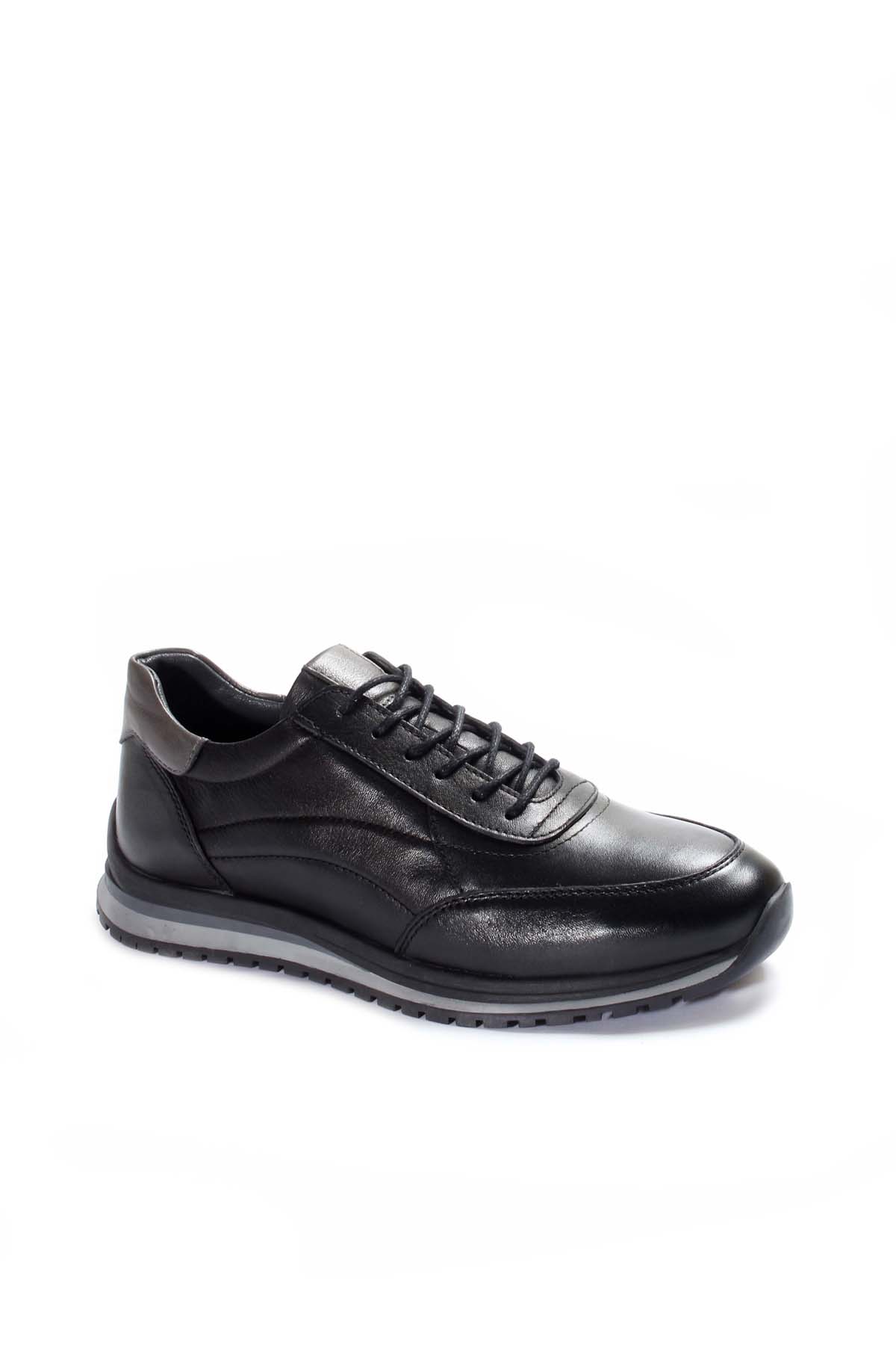Tugerdi Hakiki Deri Siyah Kauçuk Taban Bağcıklı Erkek Spor Ayakkabı TG09855131720