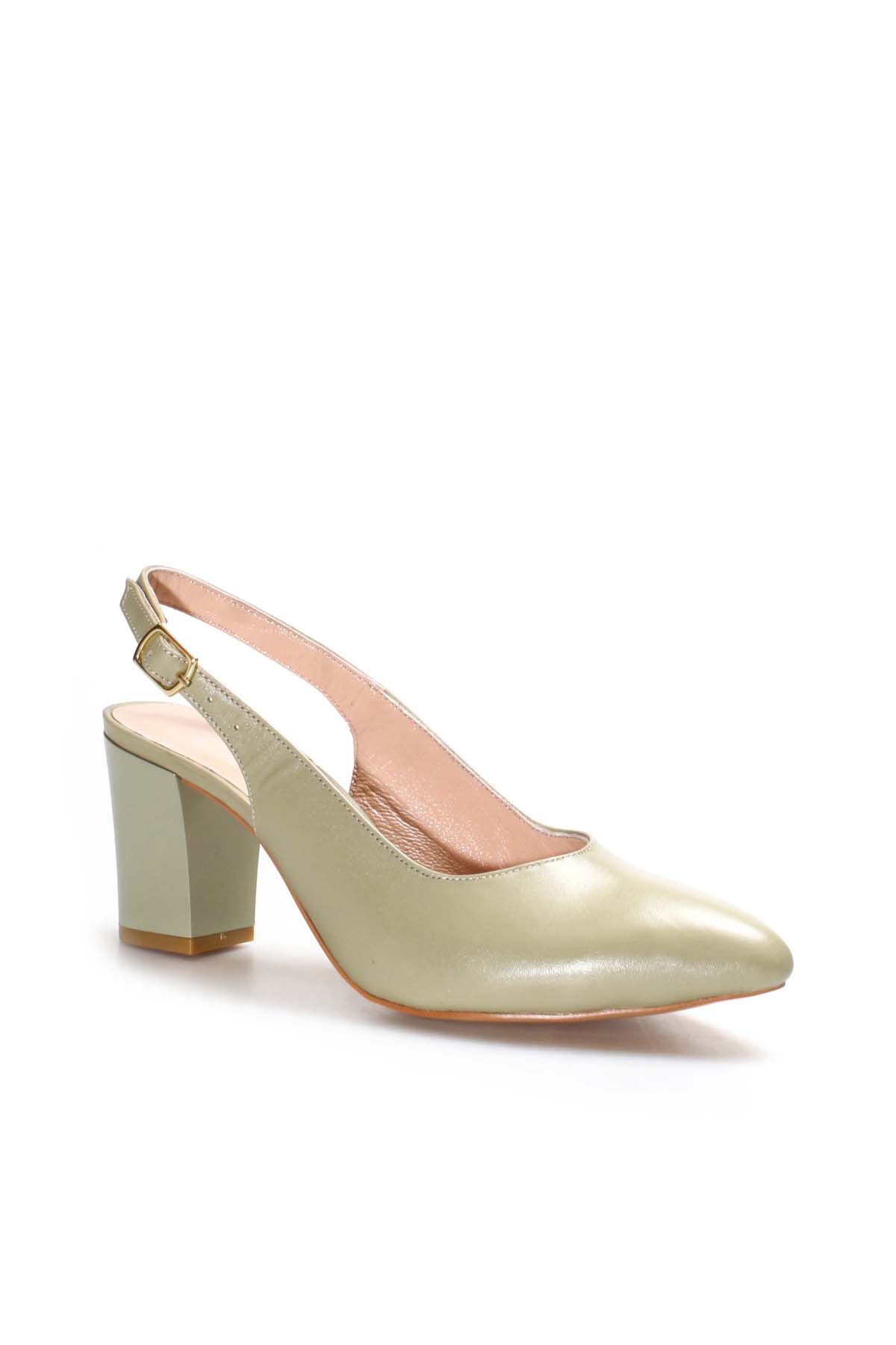 Tugerdi Hakiki Deri Avakado Kemerli Kaliteli Kadın Kalın Topuklu Ayakkabı TG09064261664