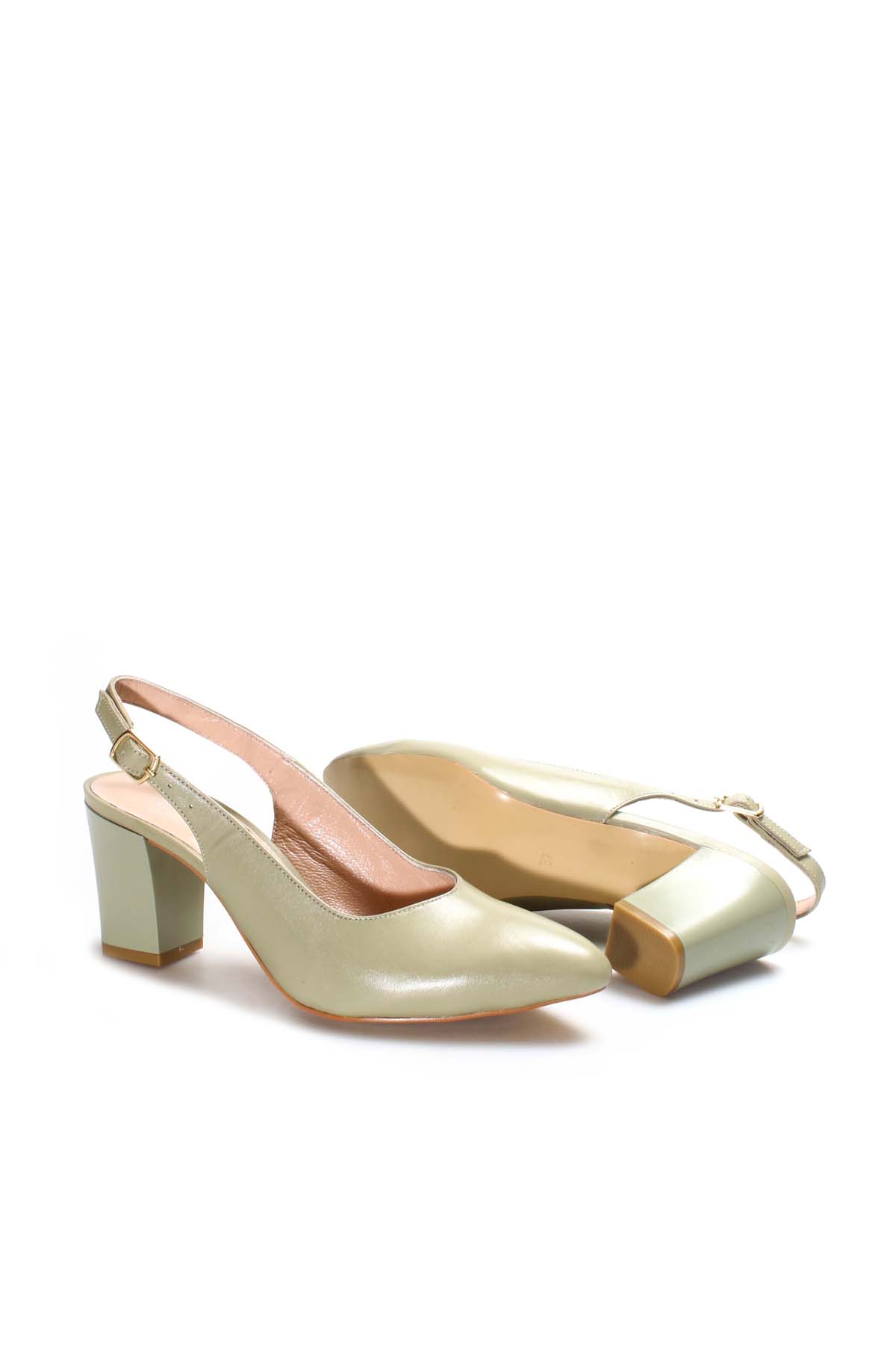 • Tugerdi Hakiki Deri Avakado Kemerli Kaliteli Kadın Kalın Topuklu Ayakkabı TG09064261664