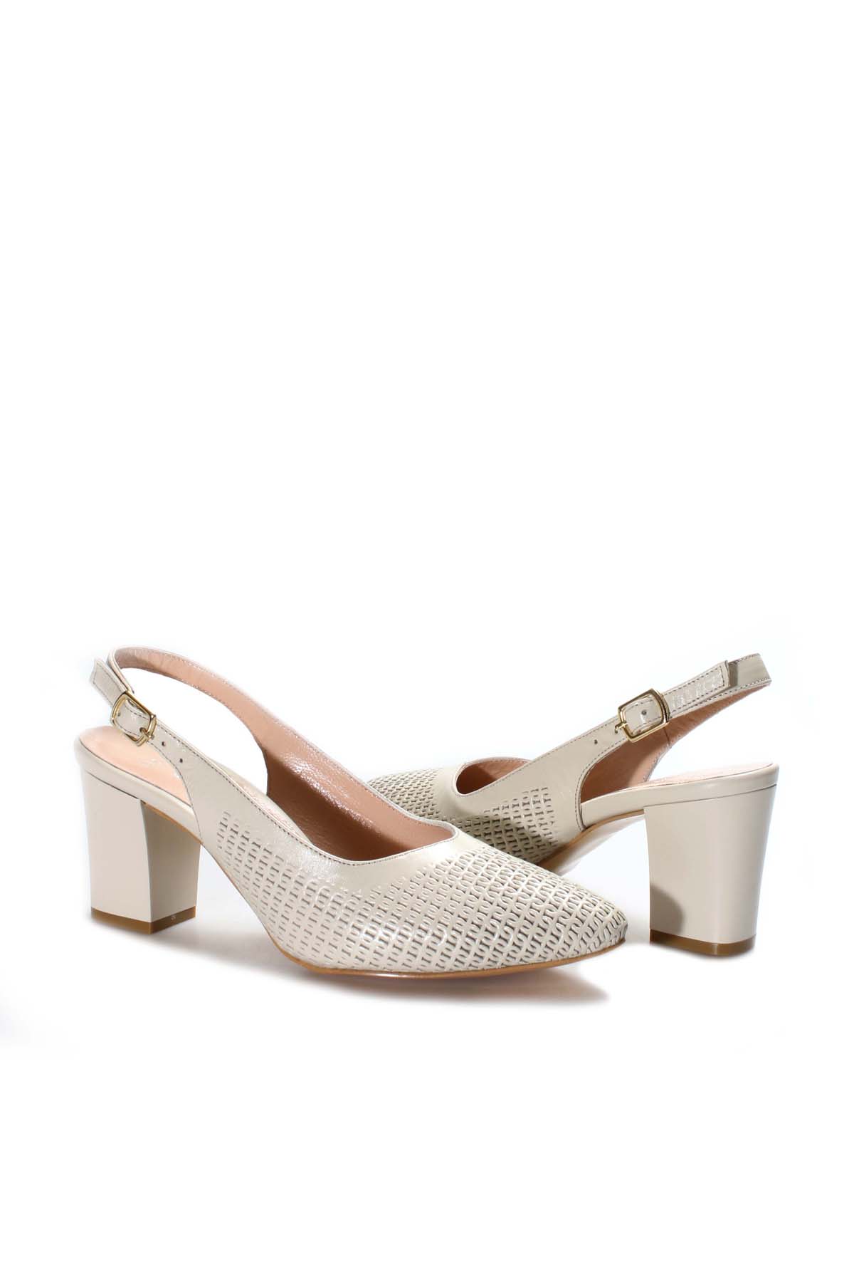 • Tugerdi Hakiki Deri Bej Jurdan Taban Kemerli Kadın Kalın Topuklu Ayakkabı TG09064261665