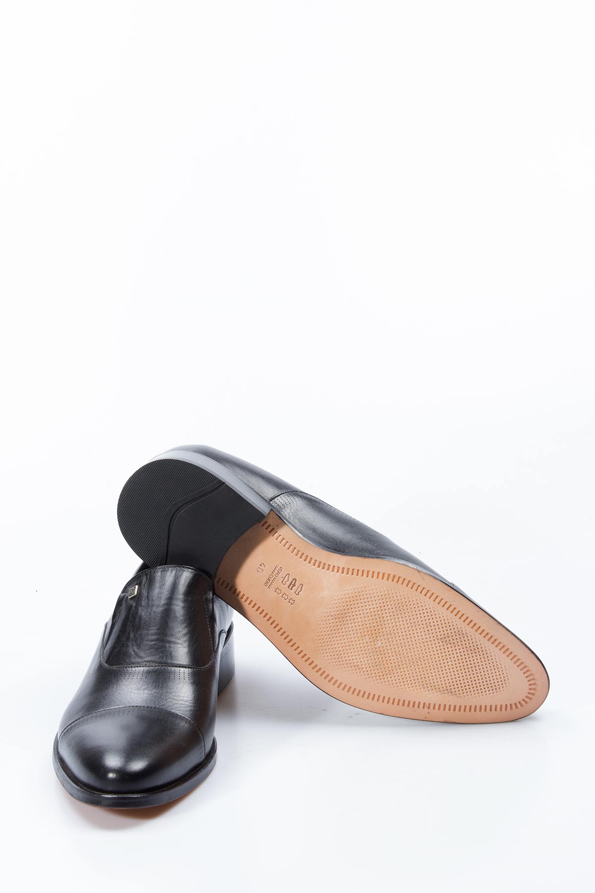 • Tugerdi Hakiki Deri Siyah Kösele Taban Klasik Kaiteli Erkek Ayakkabı TG0927813111044-a
