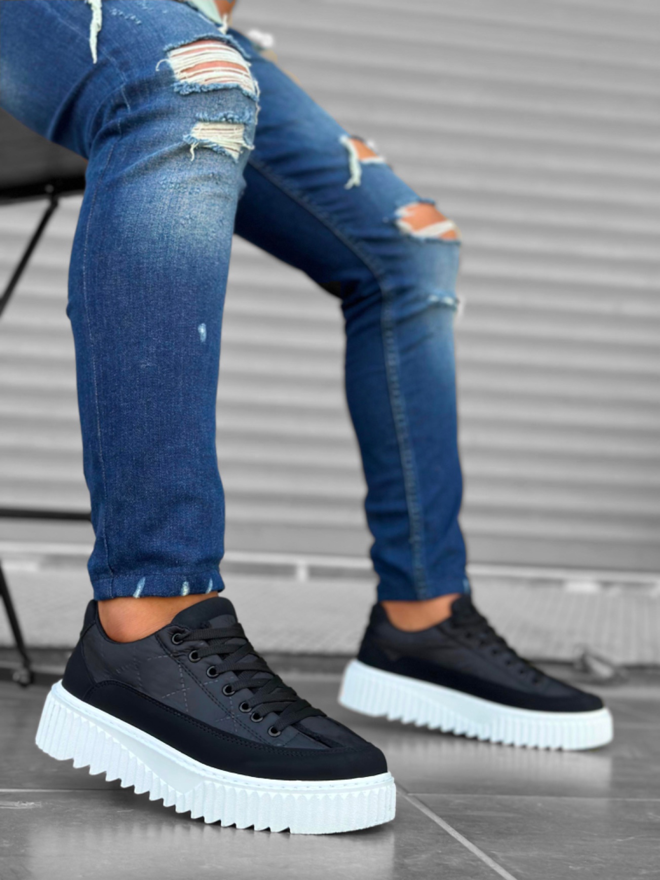 • Tugerdi Siyah Paraşüt Kumaş Siyah Detay Yüksek Beyaz Hafif Taban Tarz Erkek Spor Ayakkabı TGE230951