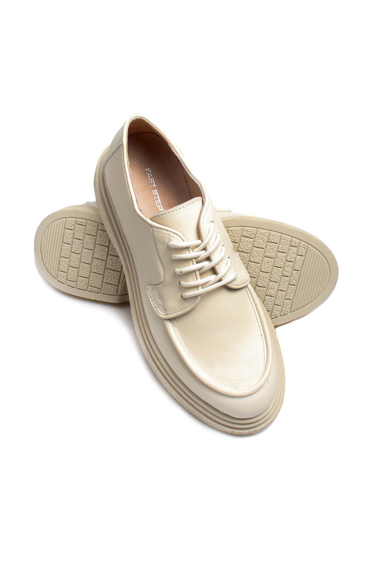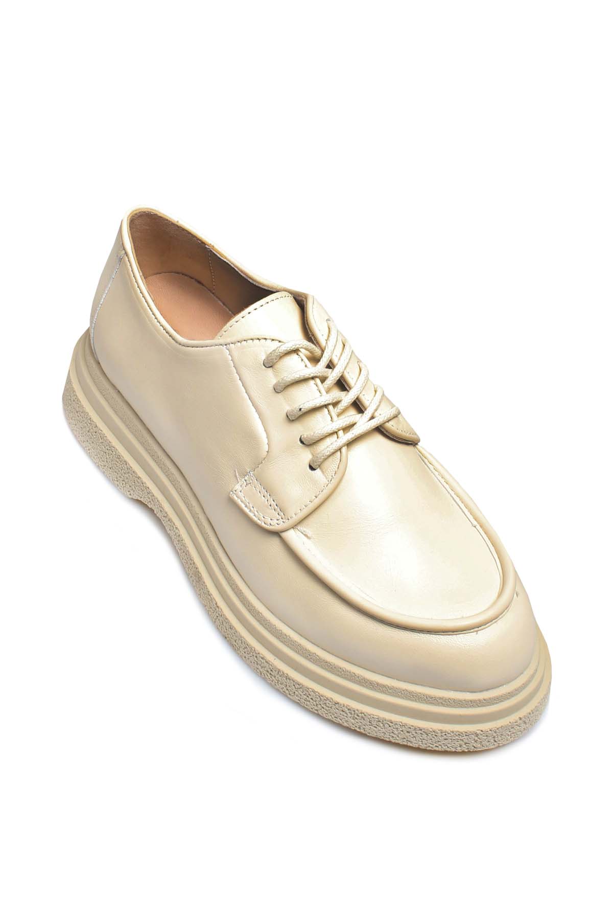 • Tugerdi Hakiki Deri Bej Termo Taban Bağcıklı Kadın Günlük Ayakkabı TG09009261456