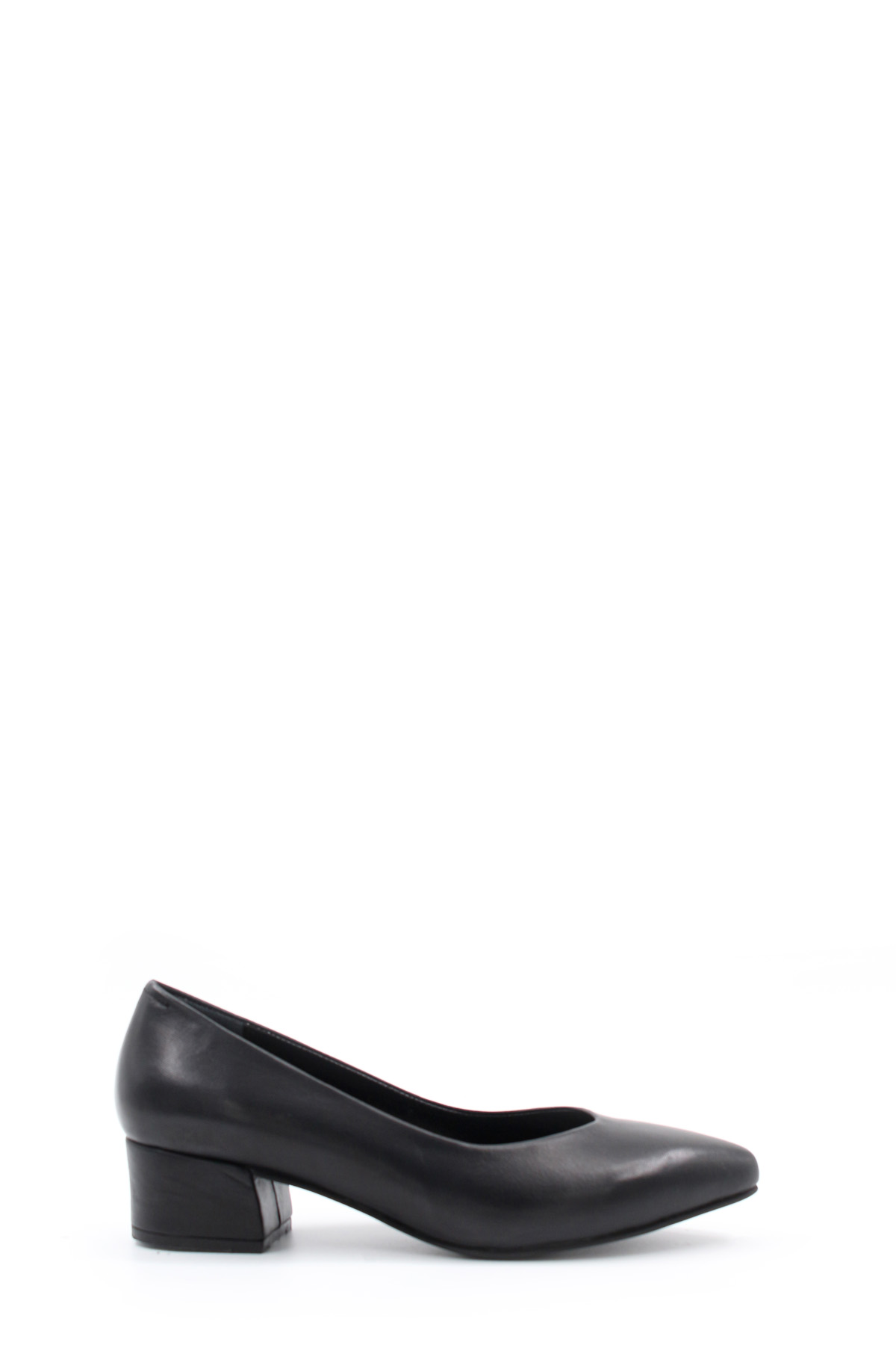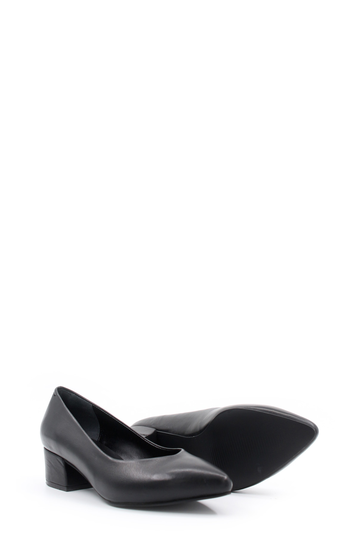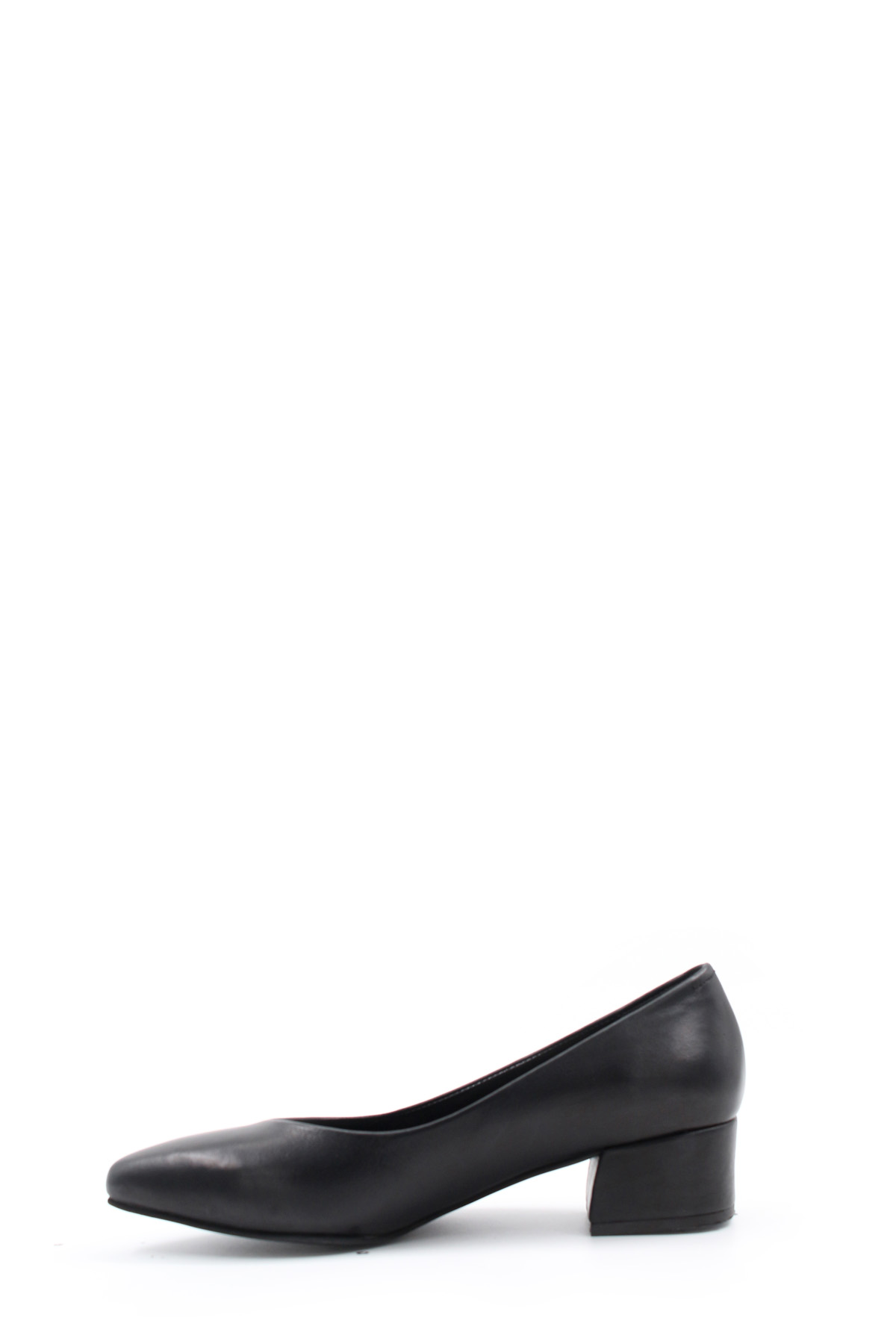 Tugerdi Hakiki Deri Siyah Neolit Taban Kaliteli Kadın Topuklu Ayakkabı TG09792261461-801