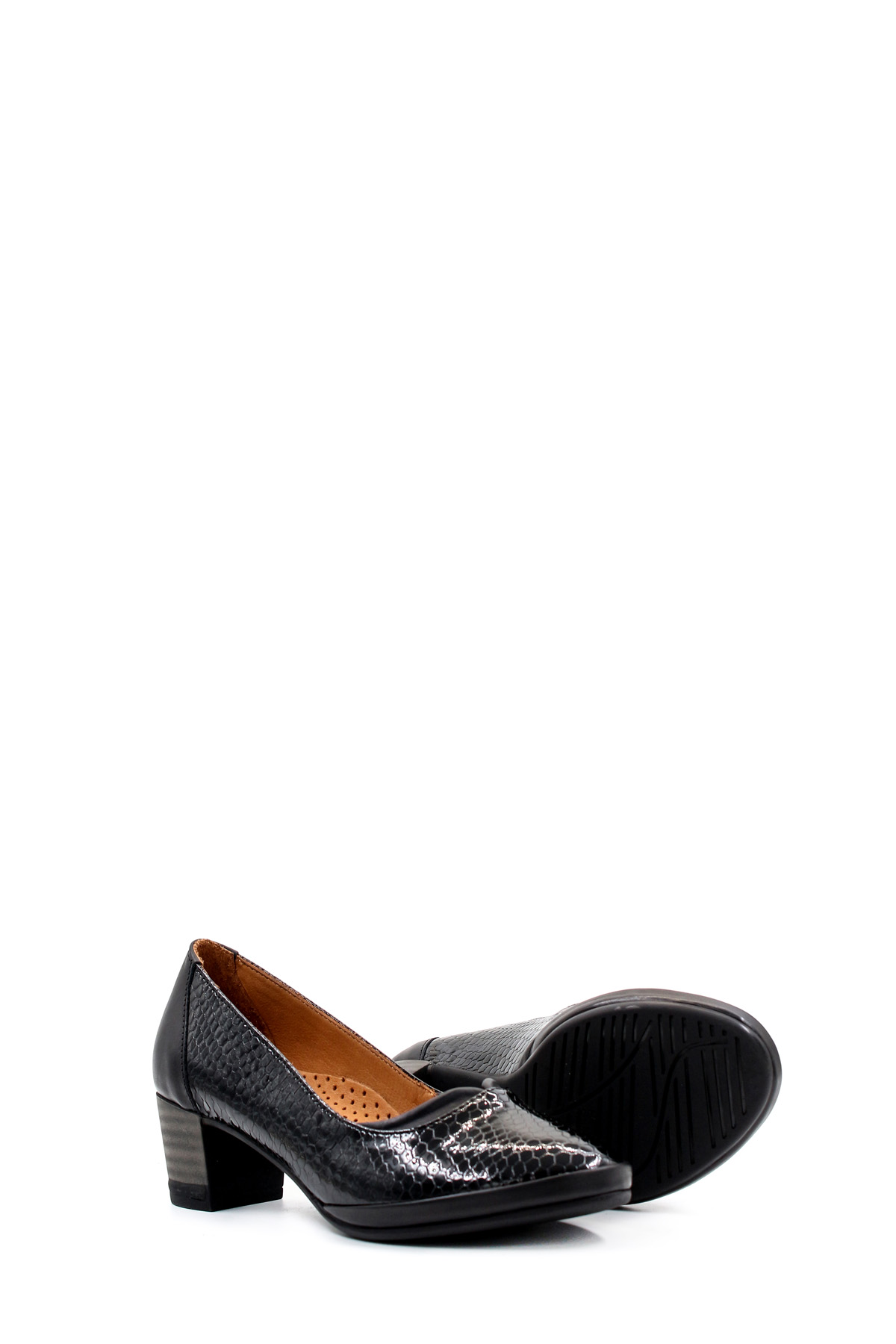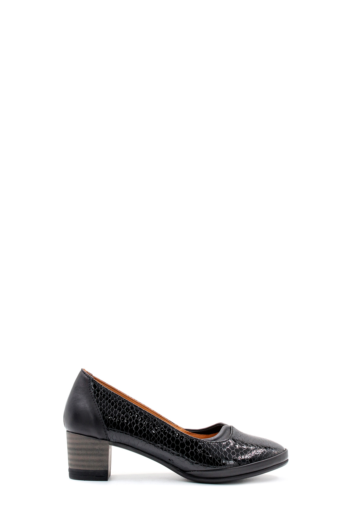 Tugerdi Hakiki Deri Siyah Kroko Hafif Taban Kadın Topuklu Ayakkabı TG09411261687