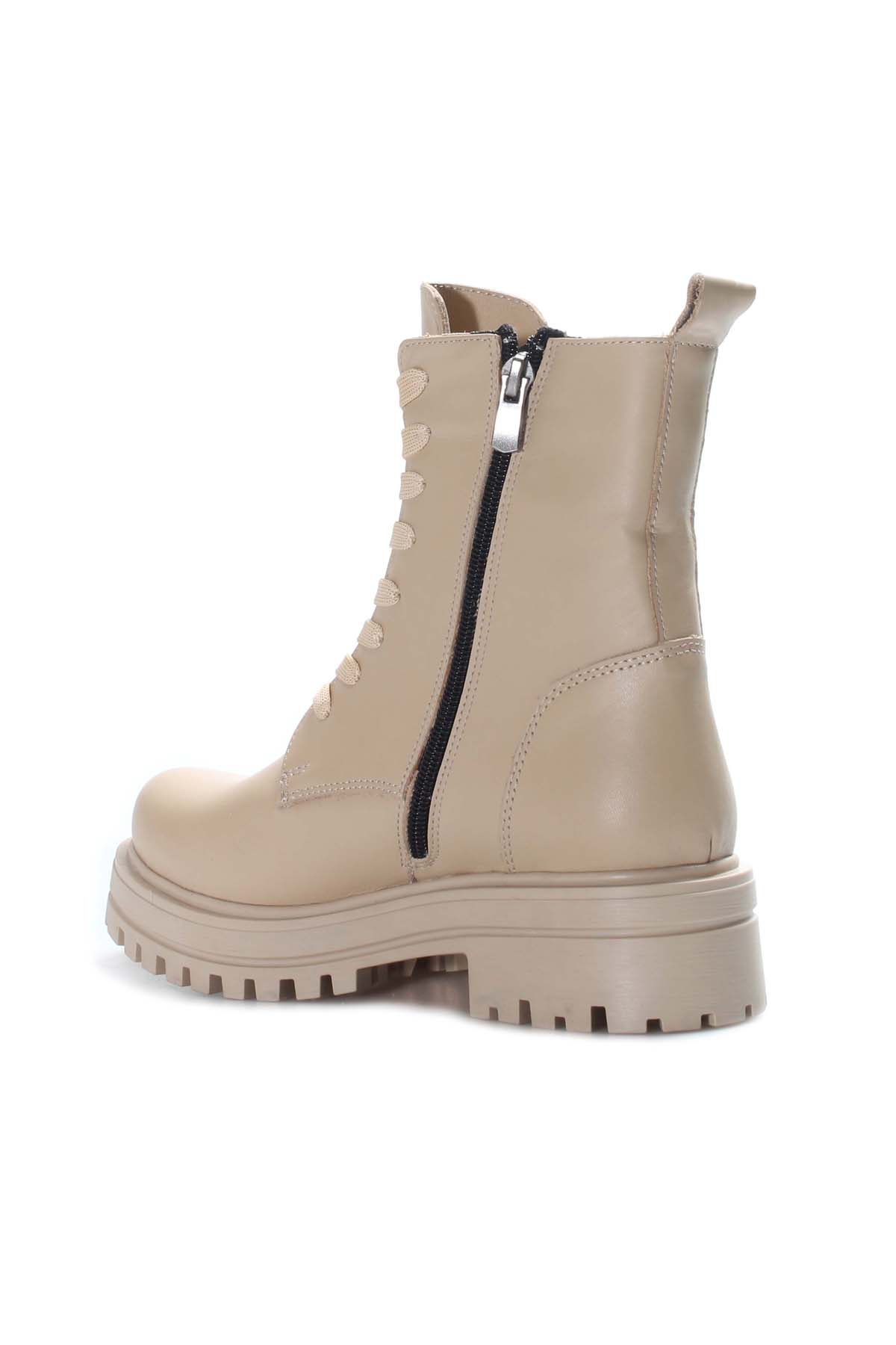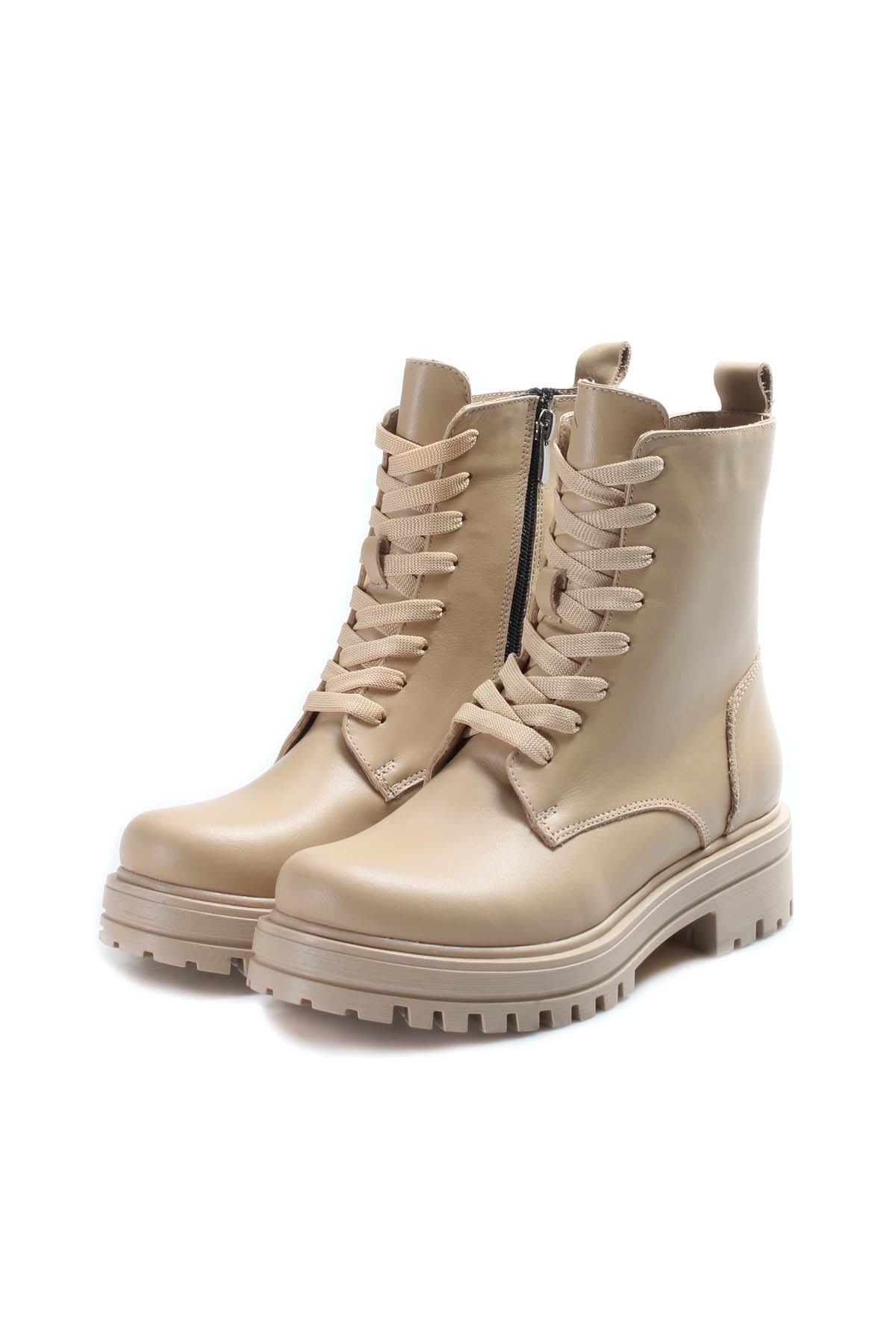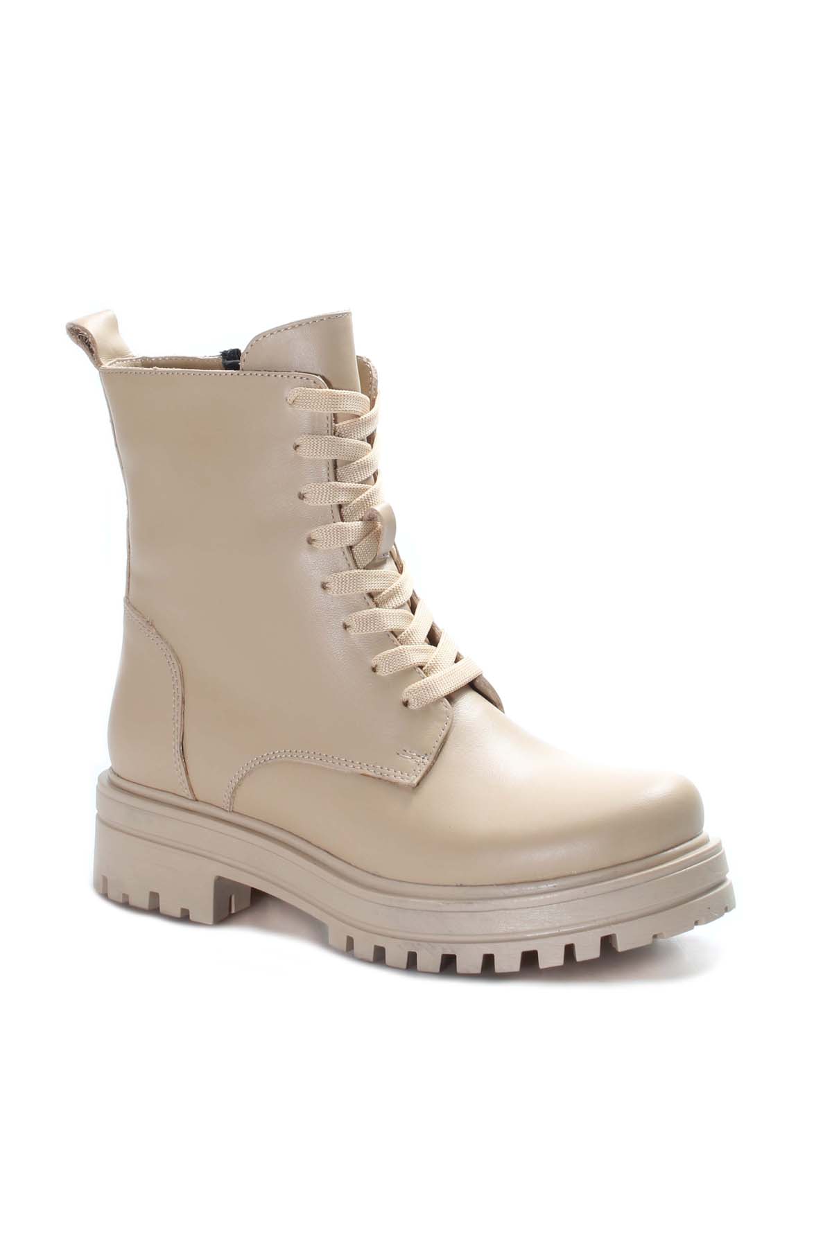 Tugerdi Hakiki Deri Şampanya Bağcıklı Fermuarlı Klasik Kadın Bot TG097571126121485