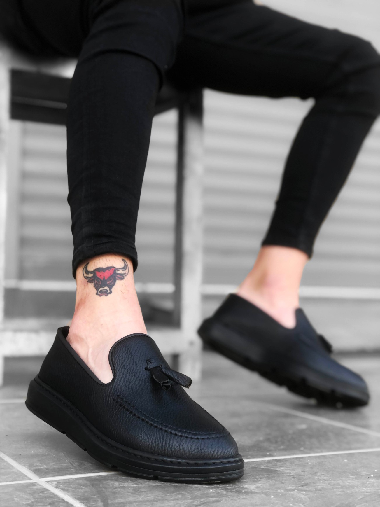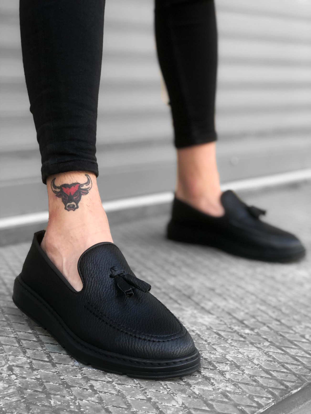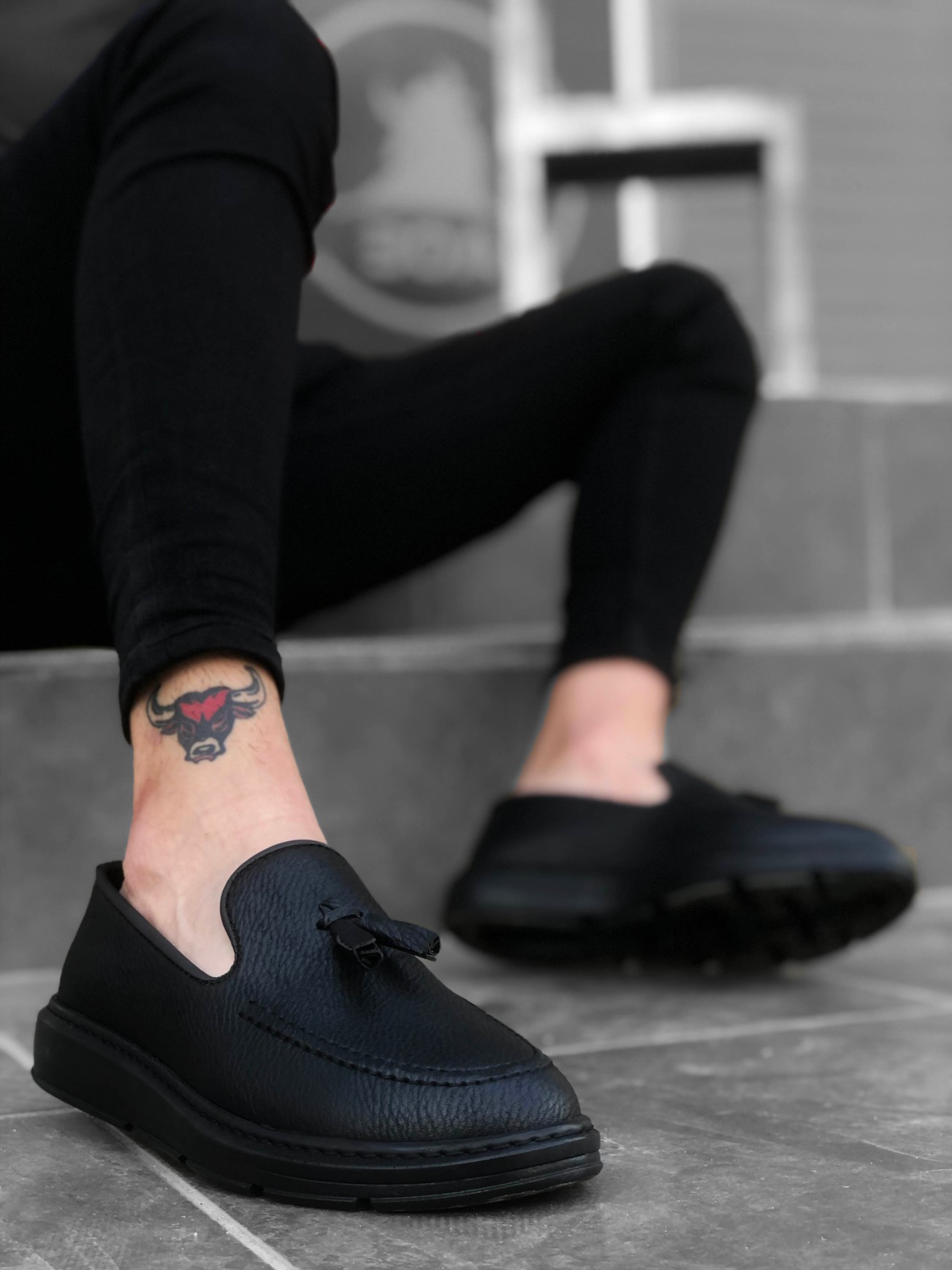 Tugerdi Bağcıksız Yüksek Taban Mat Siyah Klasik Püsküllü Tarz Erkek Ayakkabı TGE230155