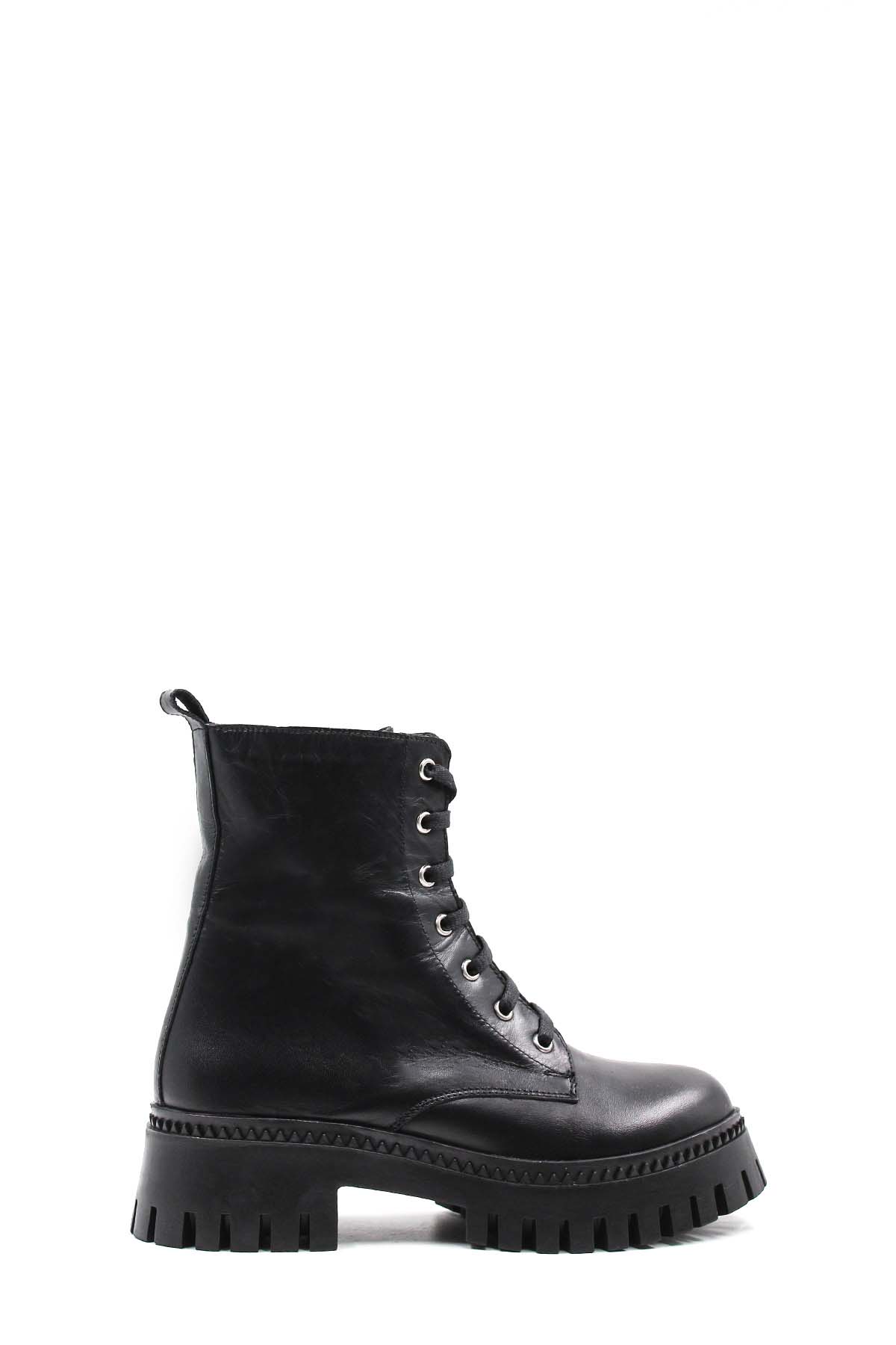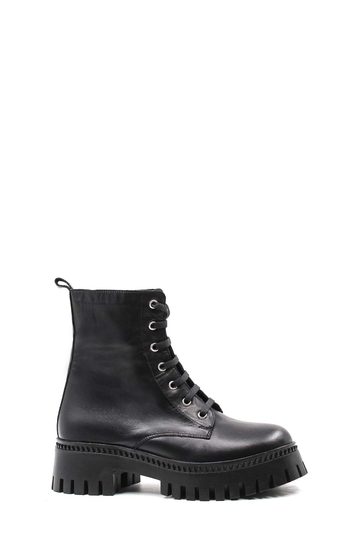 Tugerdi Hakiki Deri Siyah Kürklü Bağcıklı Fermuarlı Kadın Postal Bot TG09010112618780