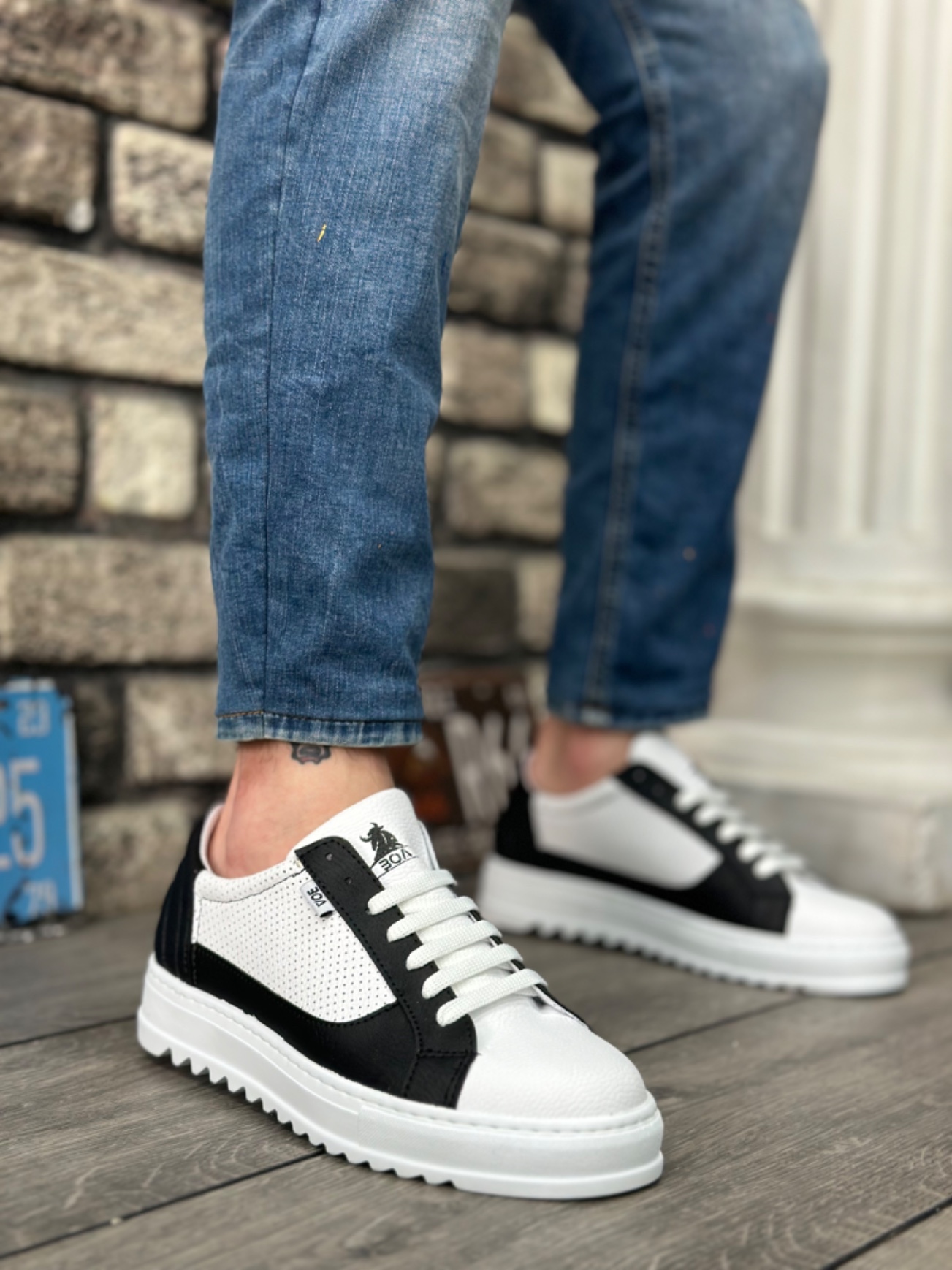 • Tugerdi Beyaz Bağcıklı Kalın Tırtık Yüksek Taban Spor Erkek Ayakkabı TGE230473