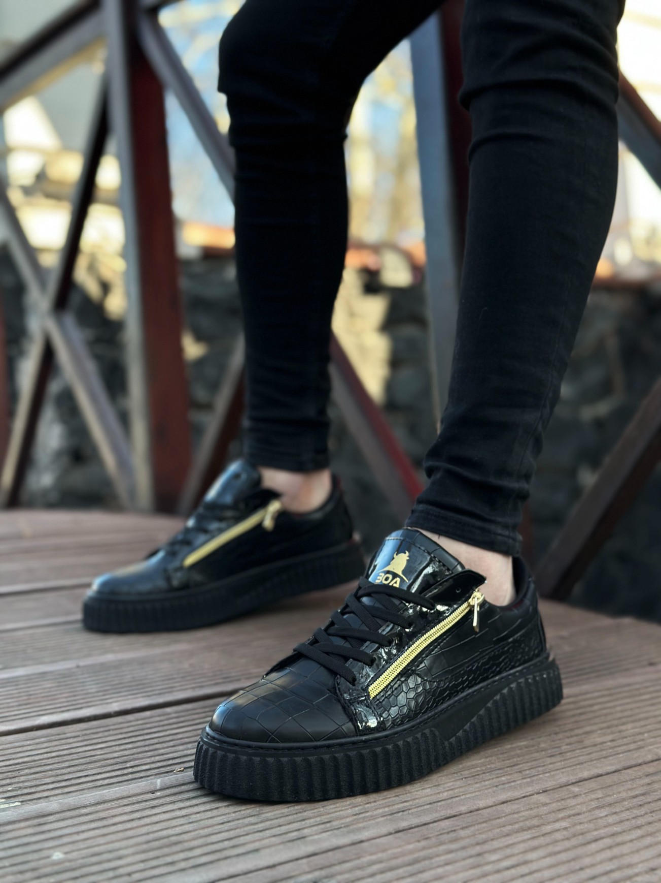 Tugerdi Kalın Yüksek Taban Çift Fermuarlı Siyah Erkek Ayakkabı TGS230458
