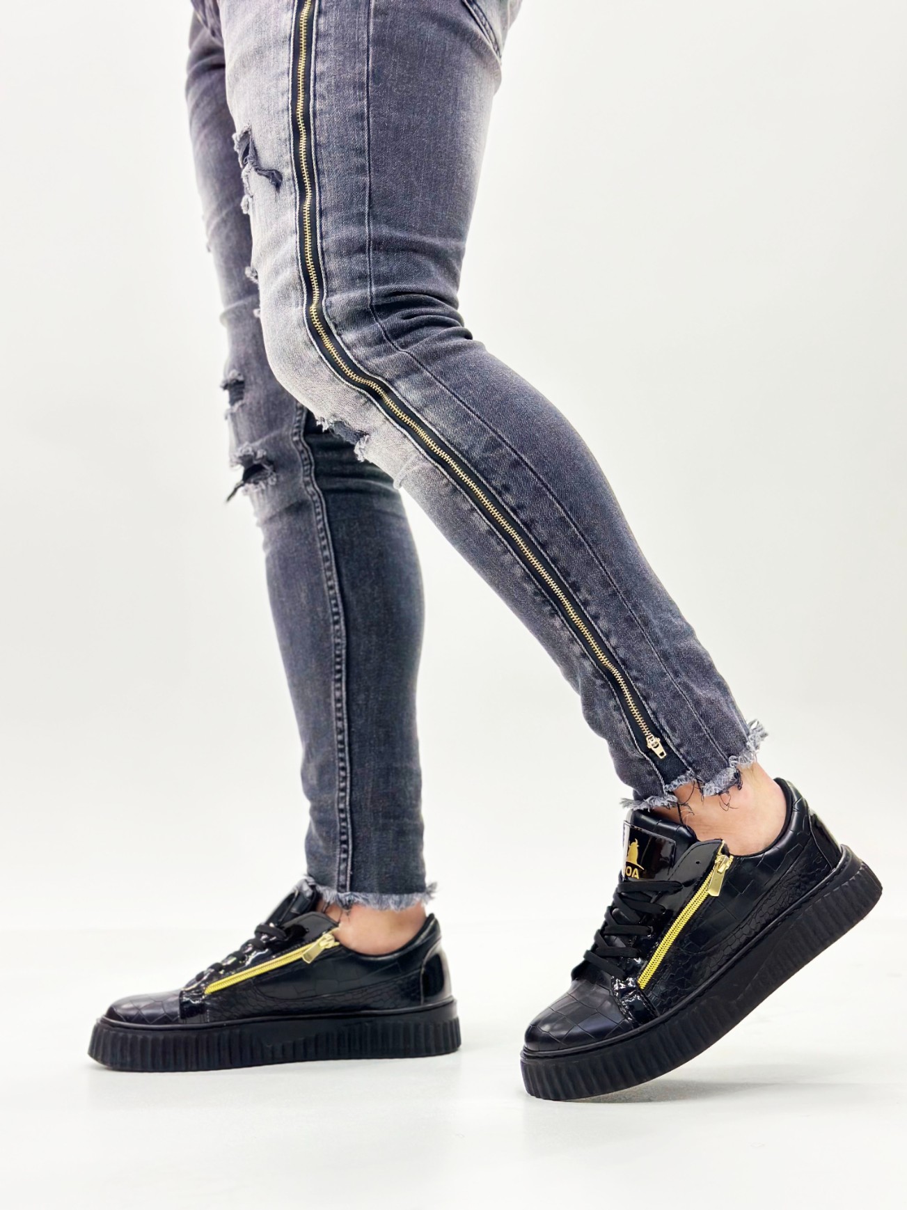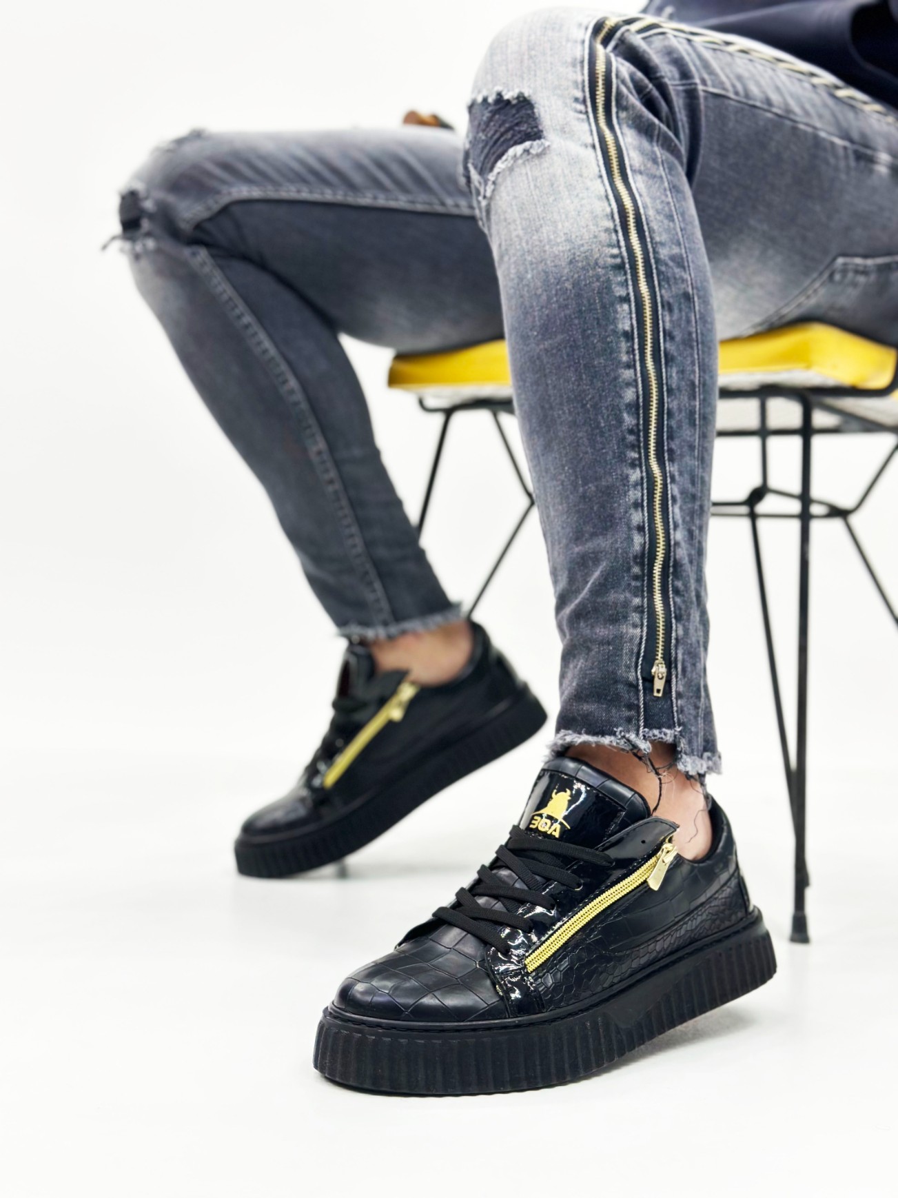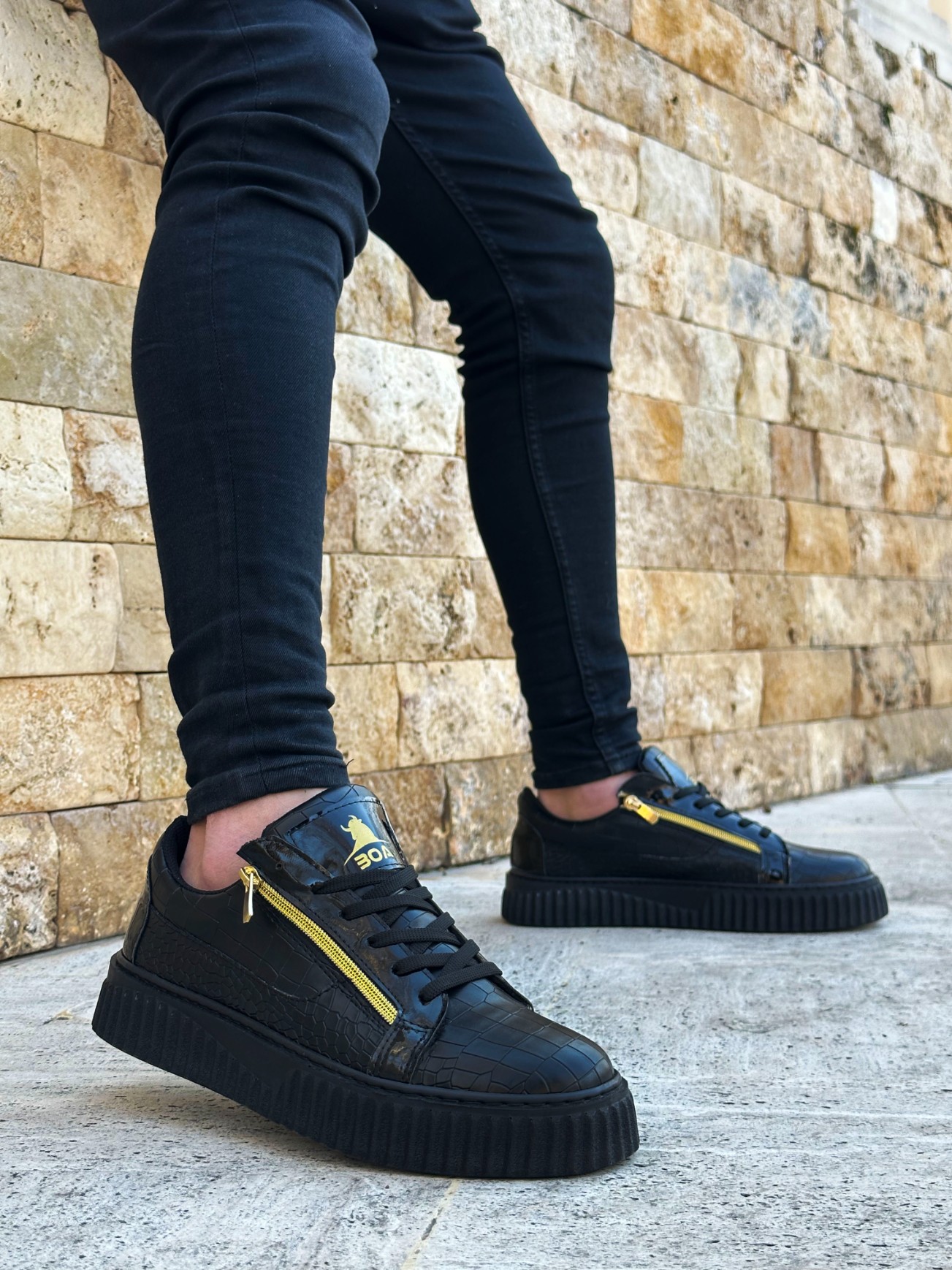 • Tugerdi Kalın Yüksek Taban Çift Fermuarlı Siyah Erkek Ayakkabı TGS230458