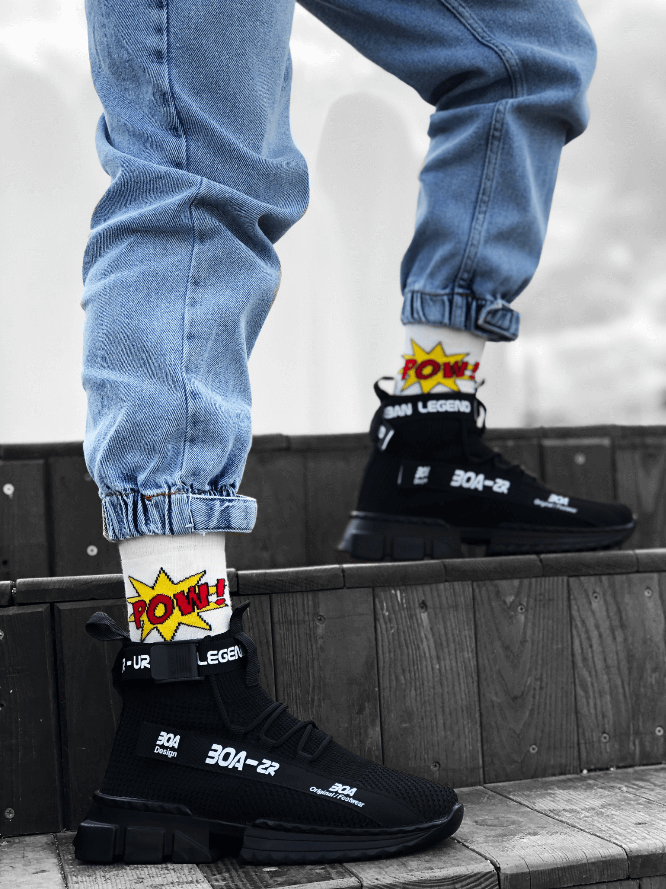 • Tugerdi Yüksek Kalın Taban Triko Siyah Tarz Günlük Erkek Spor Ayakkabı TGT230850
