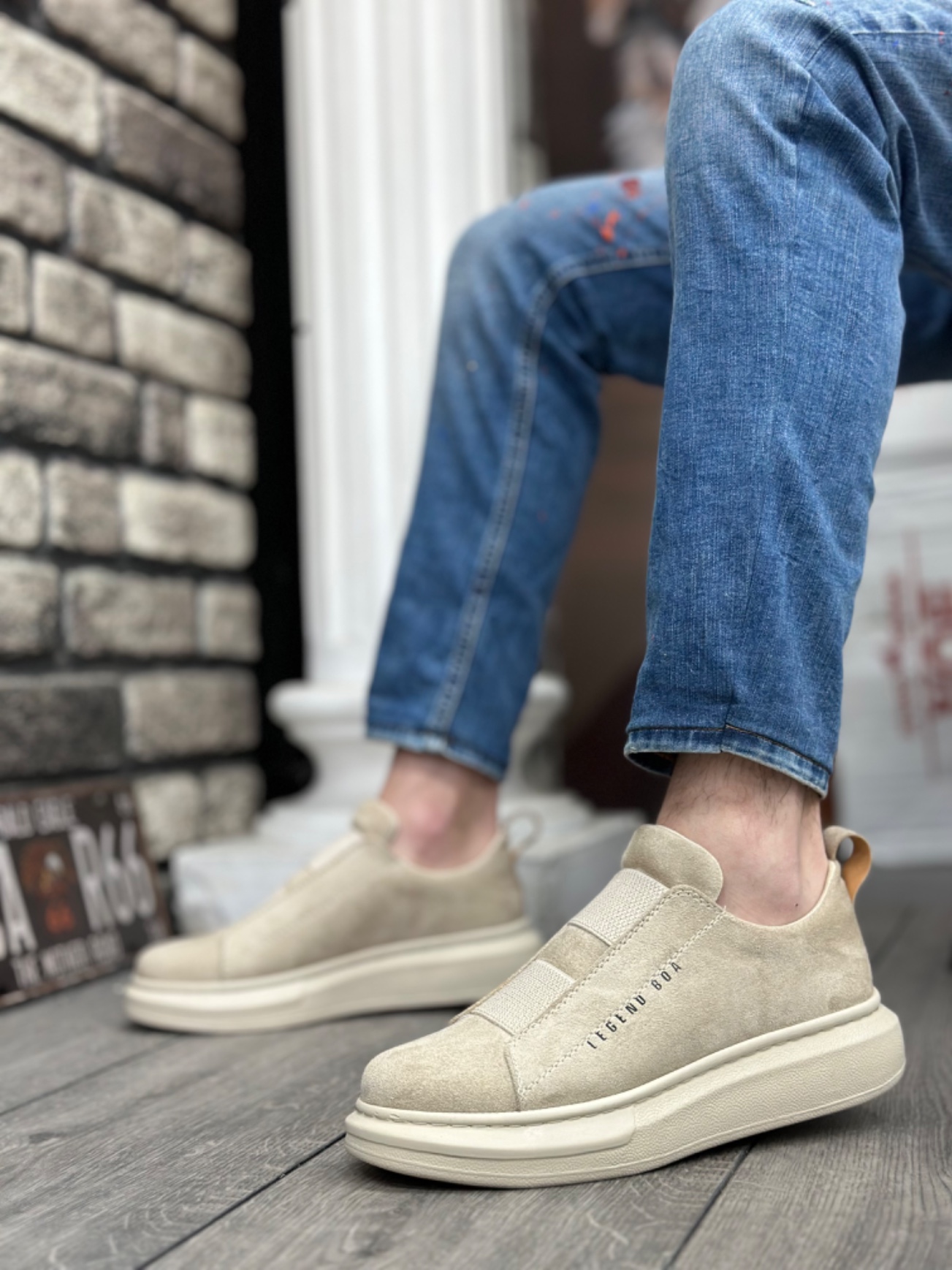 • Tugerdi Bej Süet Kalın Yüksek Taban Çift Bant Erkek Spor Ayakkabı TGE230457