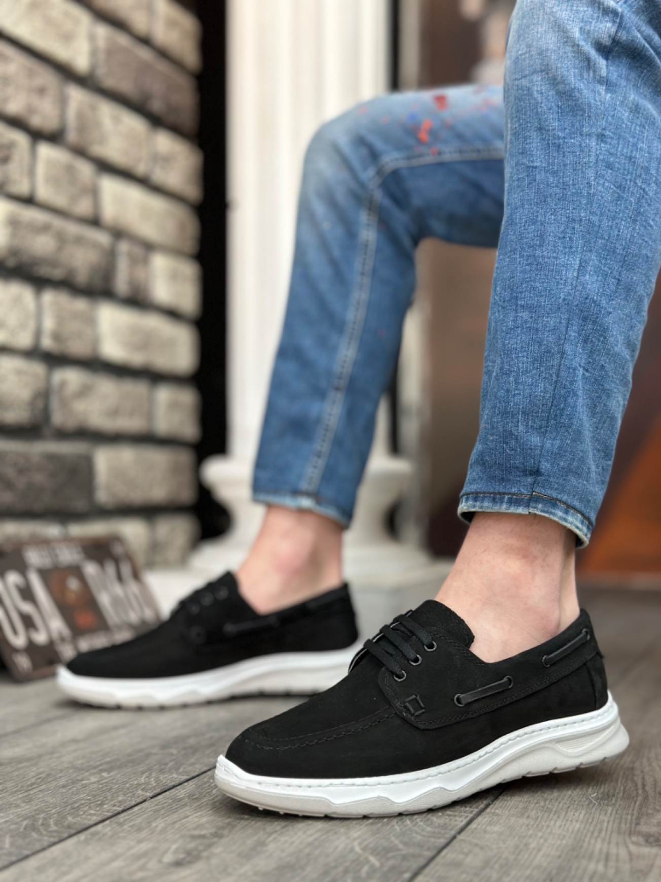 Tugerdi Siyah Nubuk İçi Dışı Hakiki Deri Bağcıklı Günlük Erkek Ayakkabı TGE230487