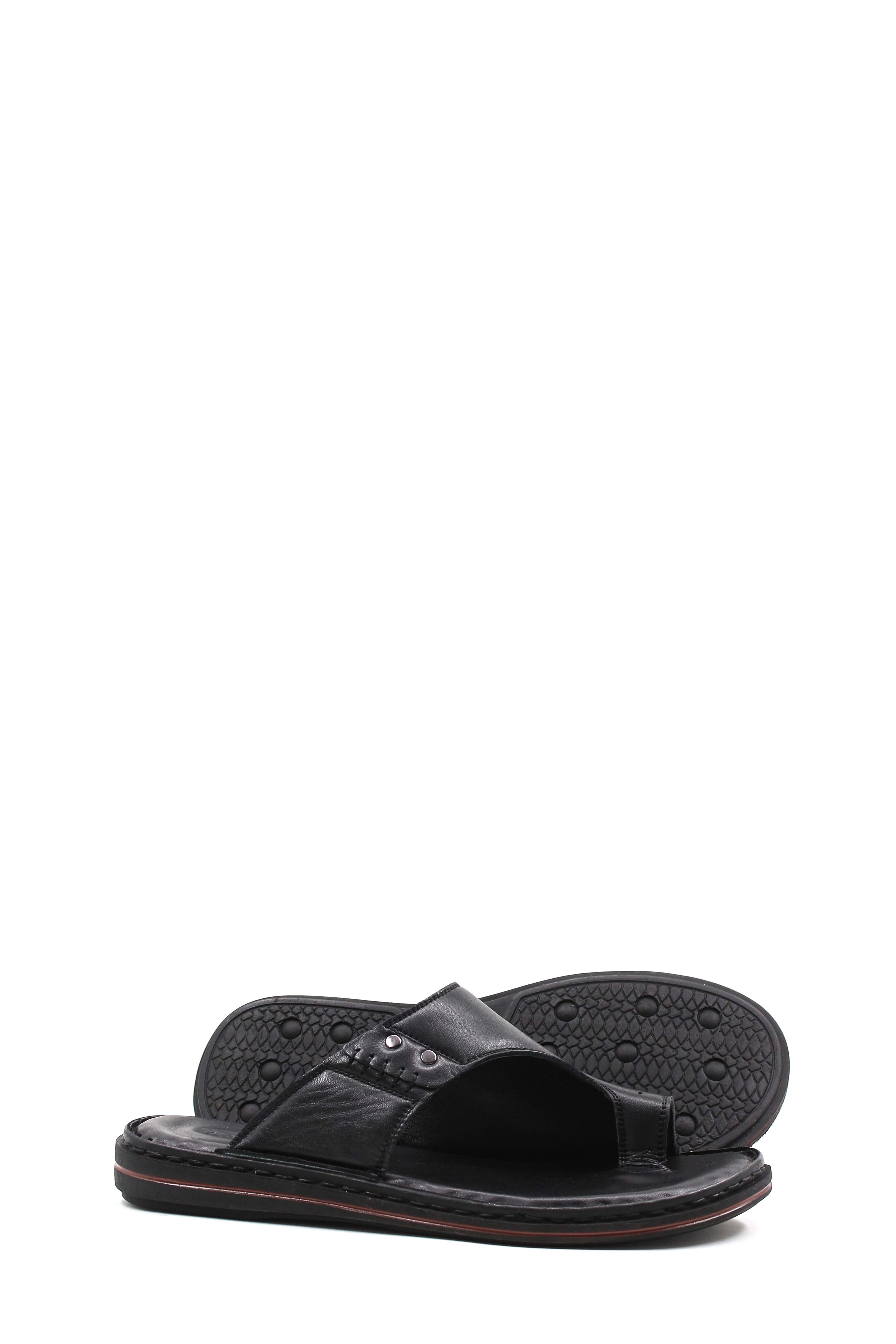 Tugerdi Siyah Hakiki Deri Rahat Taban Kaliteli Parmak Arası Erkek Terlik TG09128131529