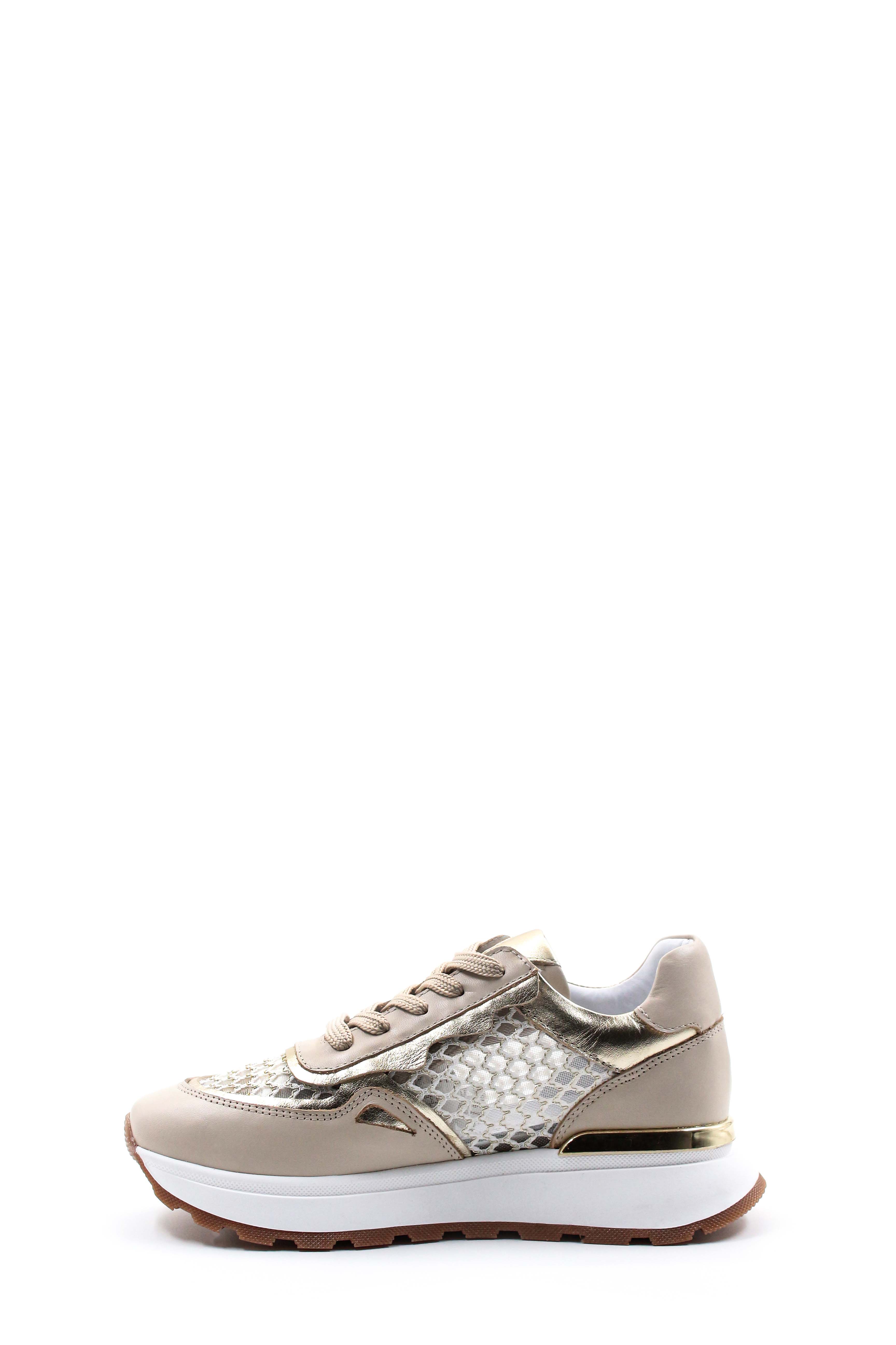 Tugerdi Bej Altın Hakiki Deri Bağcıklı Termo Taban Kaliteli Kadın Spor Ayakkabı TG0975726124461